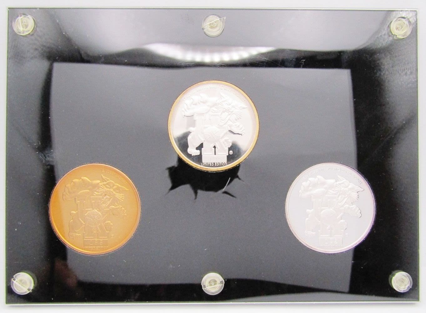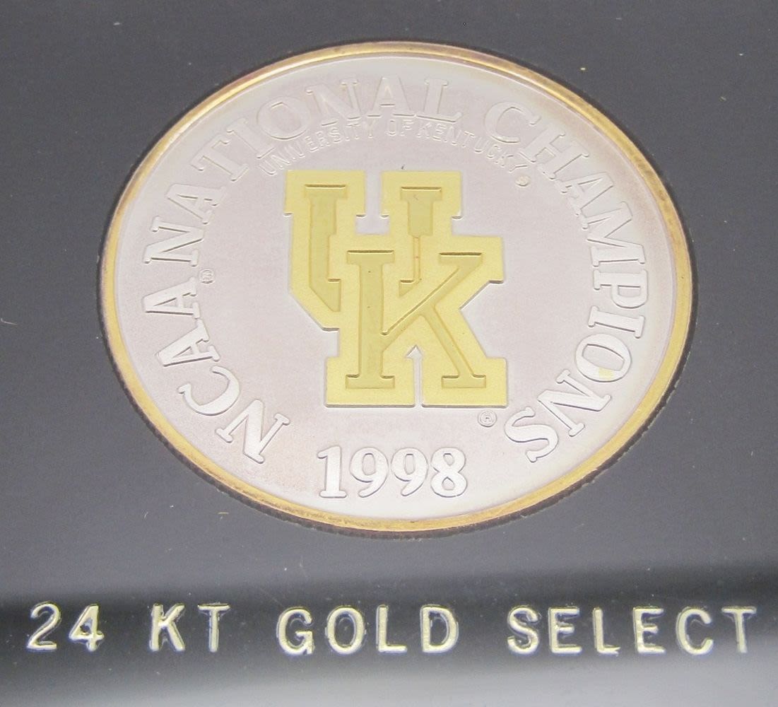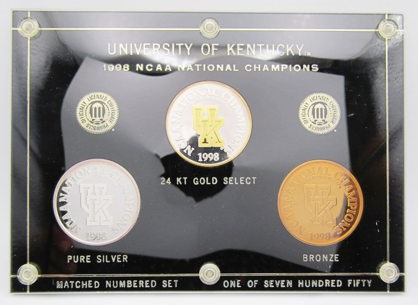 1998 NATIONAL CHAMPIONS 24kt GOLD SELECT ROUND, PURE SILVER ROUND, BRONZE ROUND in SCREW DOWN DISPLAY