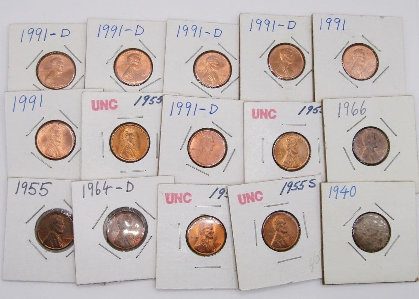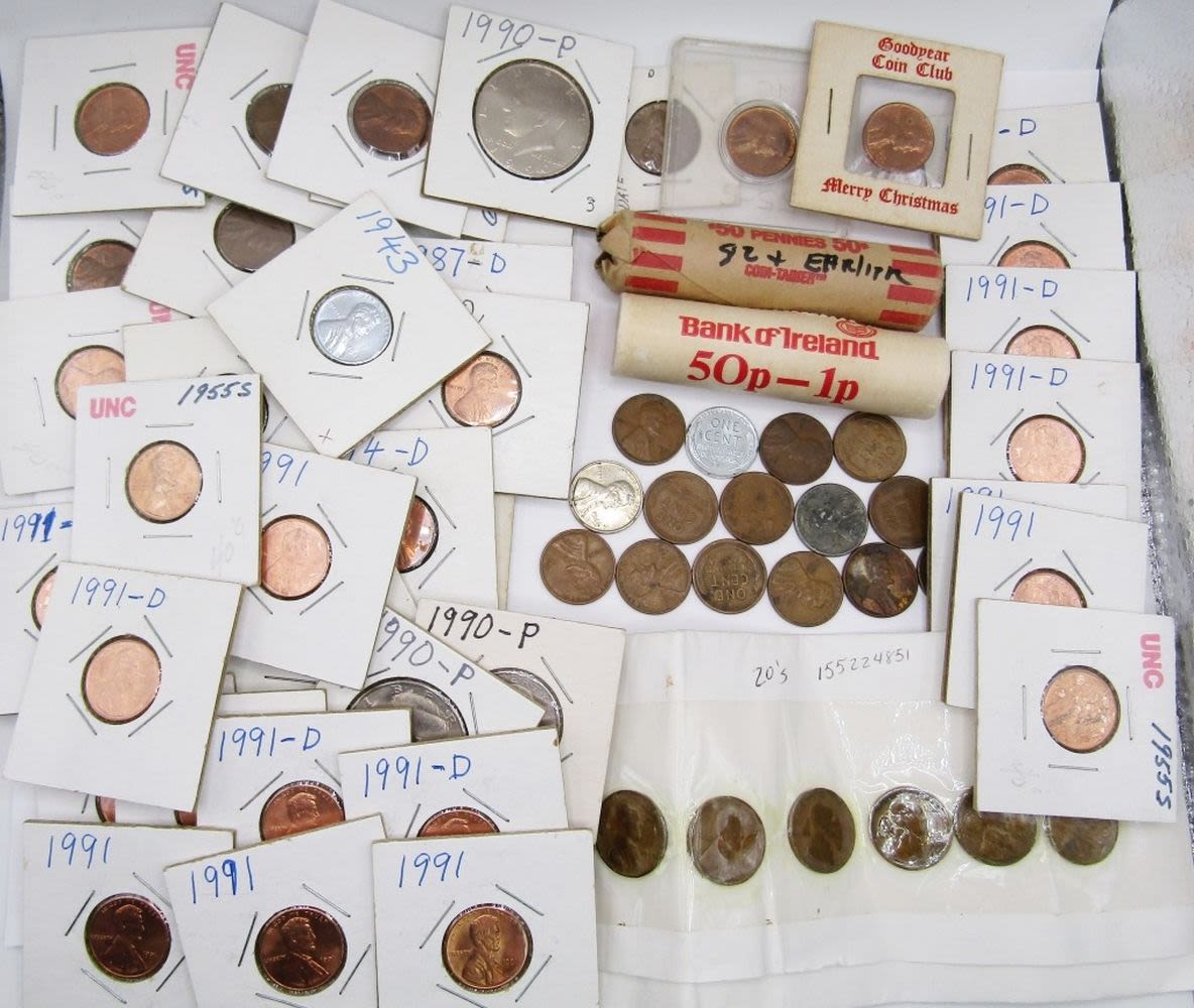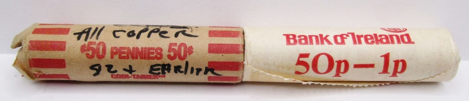 BU ROLL; 36 MIXED WHEAT CENTS; 26 LINCOLN CENTS 1964-1991 MOSTLY BU