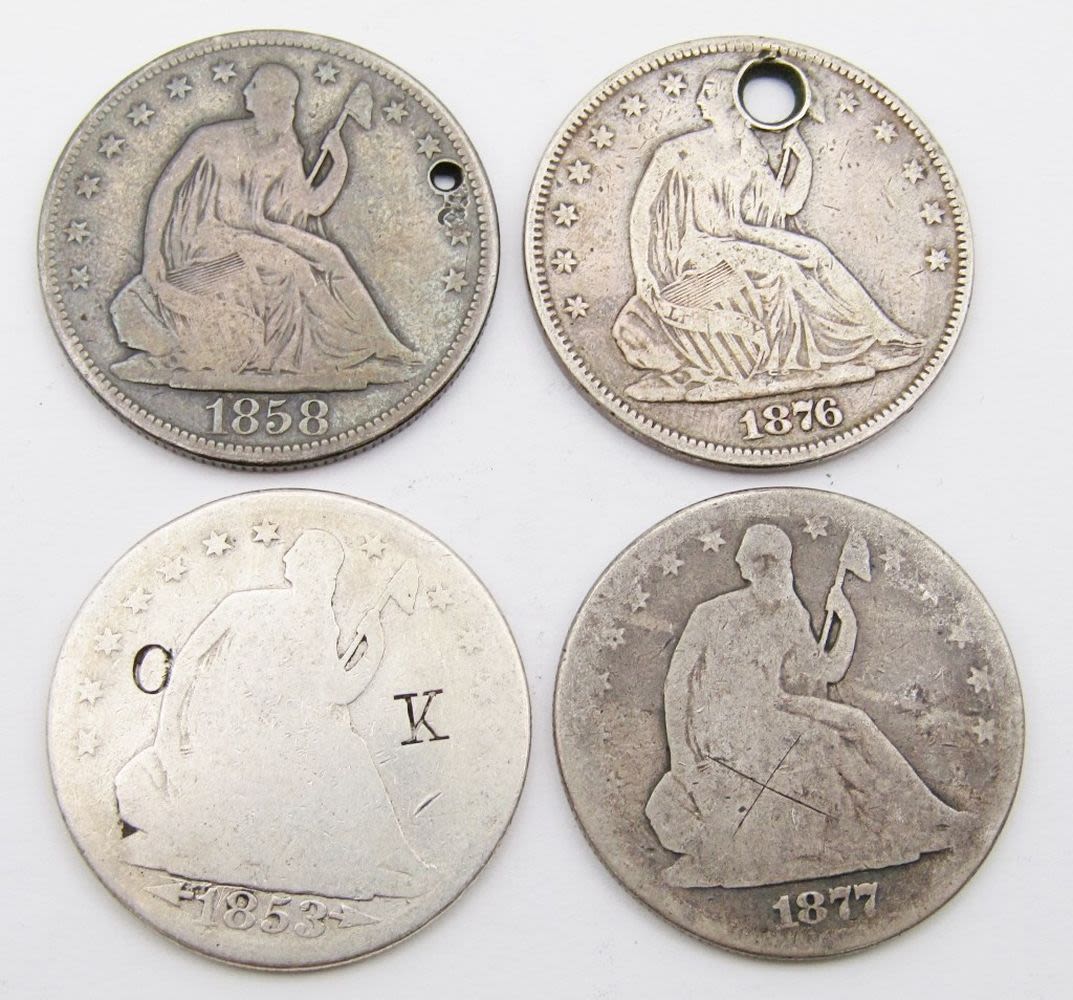 HOLED – ISSUES ( 1877, 1853 w/RAYS, 1876, 1858))