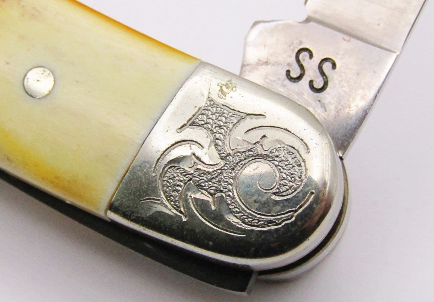 Stockman Knife, 1 Dot, Etched Bolsters, Near Mint/Mint Condition!