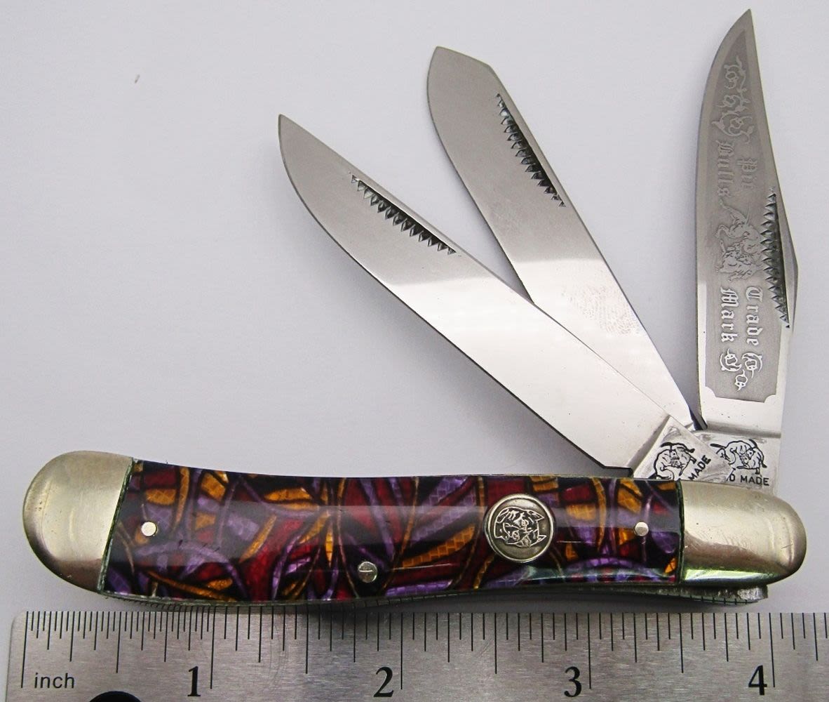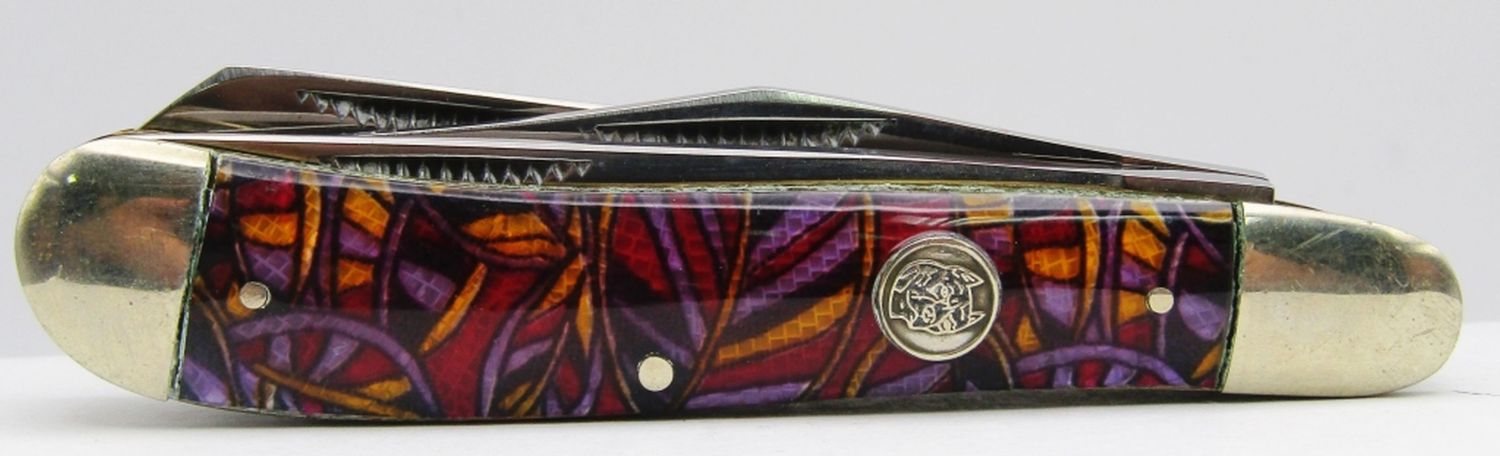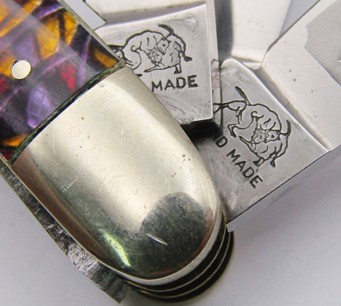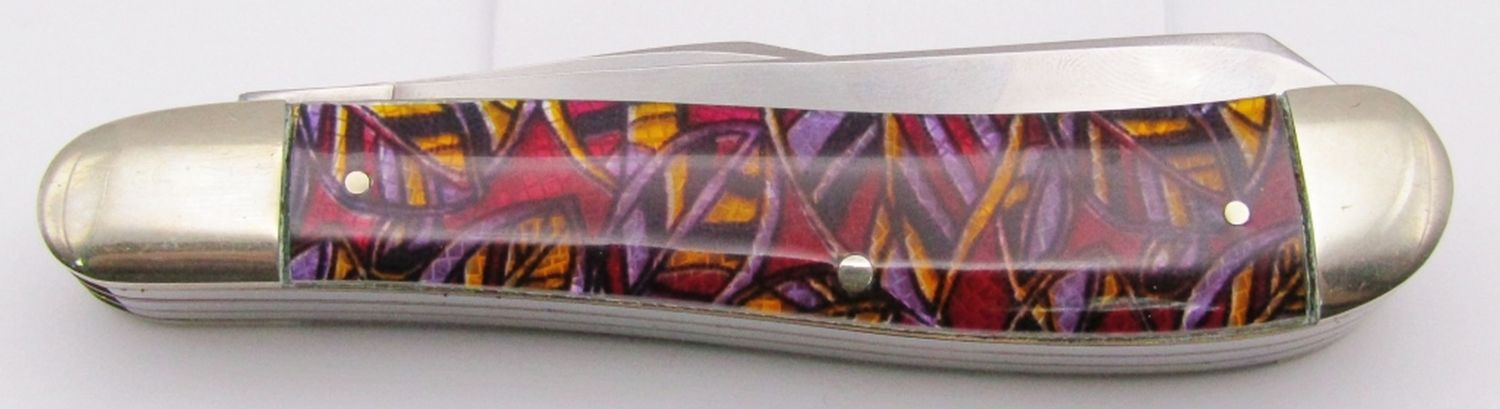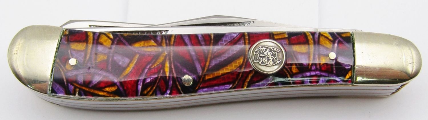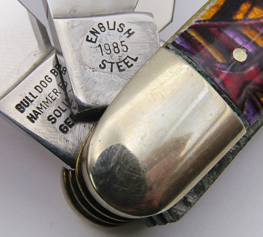 Near Mint Condition; Handmade English Steel 1985 Folding Pocket Knives! Colorful Celluloid Handles!