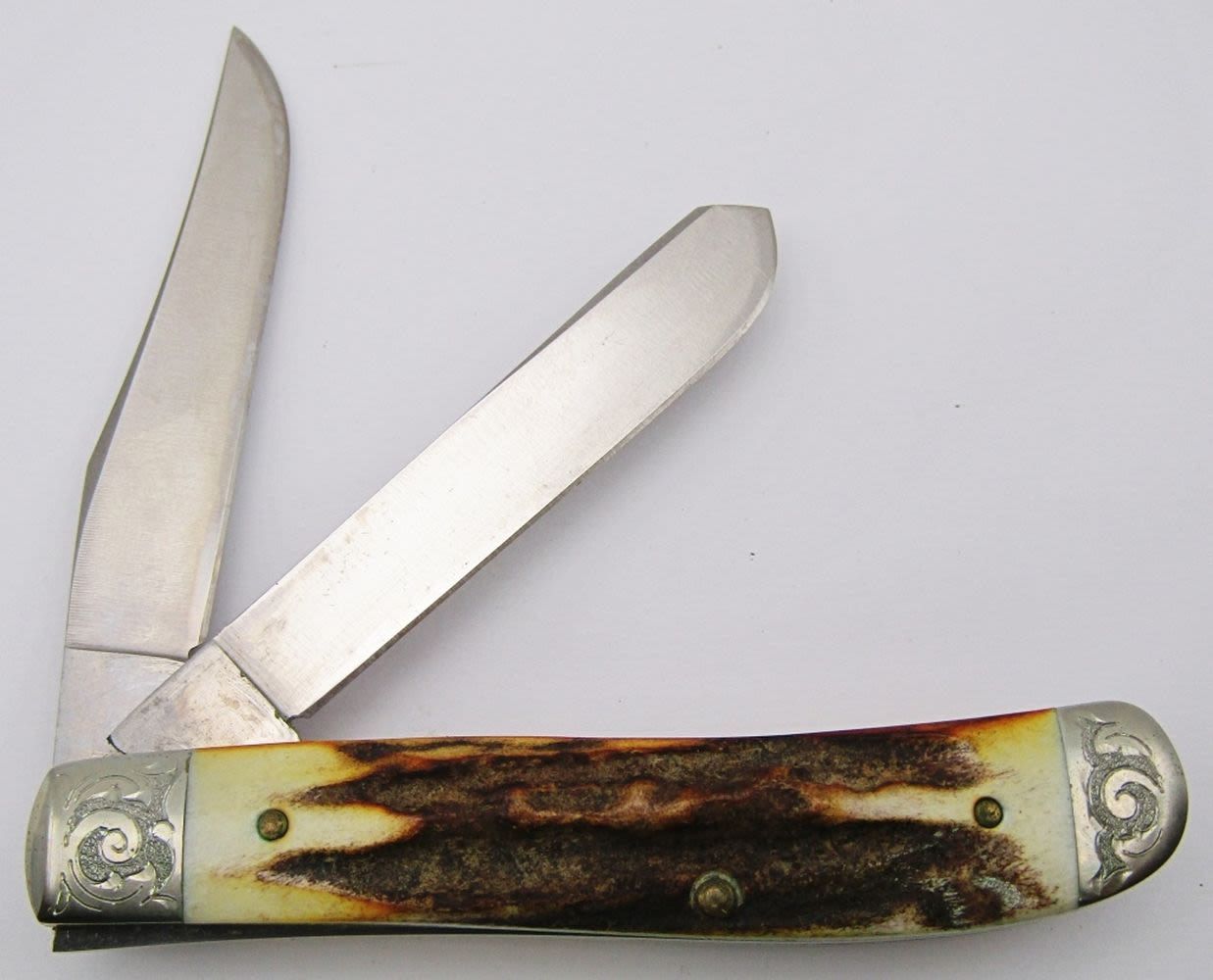 5207 SP-SSP MINI Trapper Knife; Etched Blade Serial #629; Scrolled Nickel Silver Bolsters; Near Mint Condition!