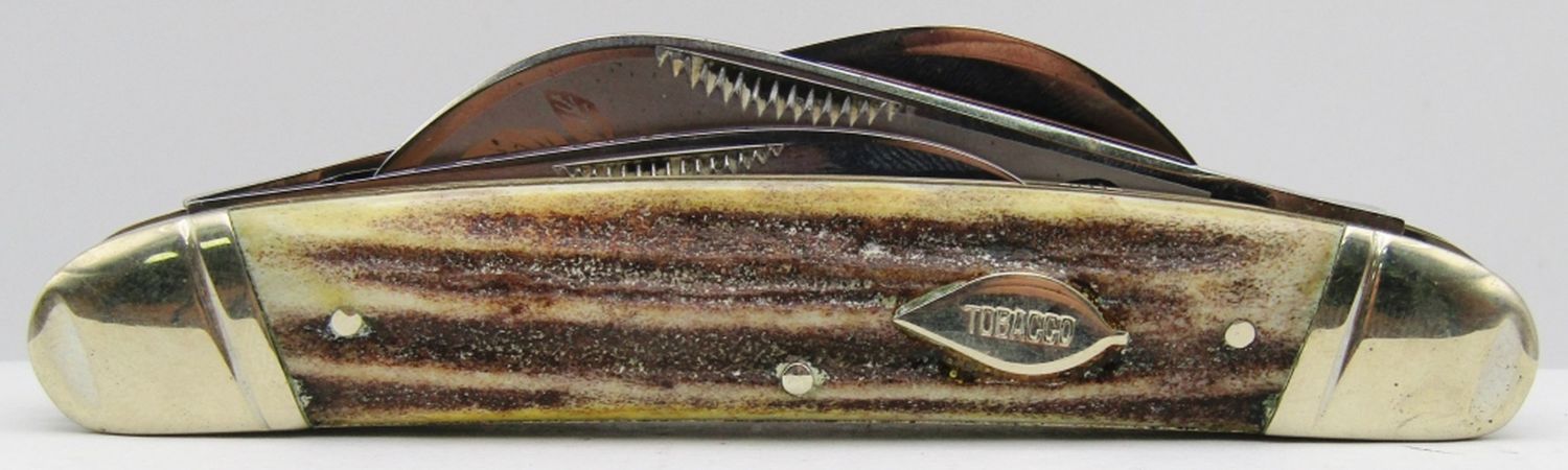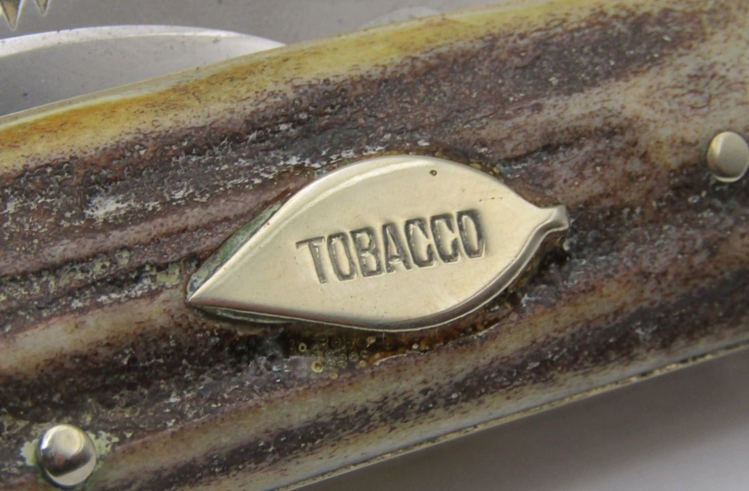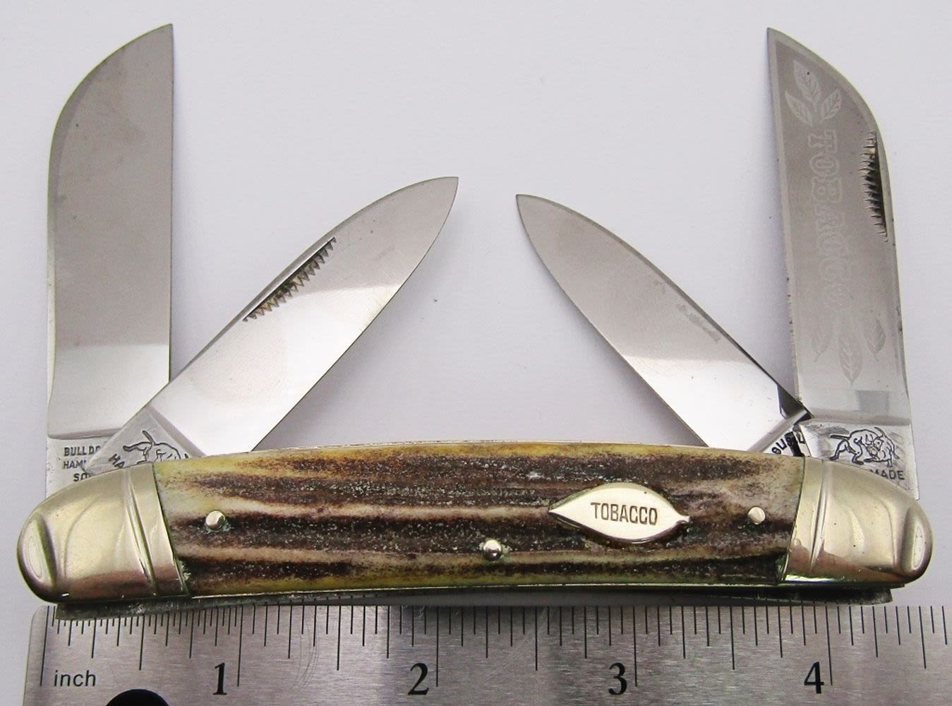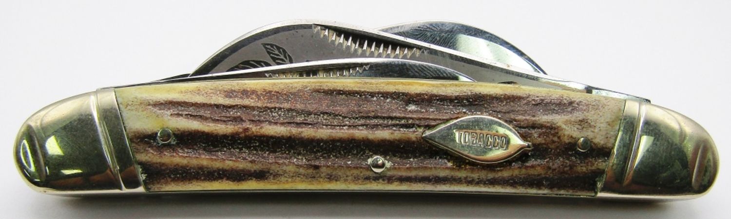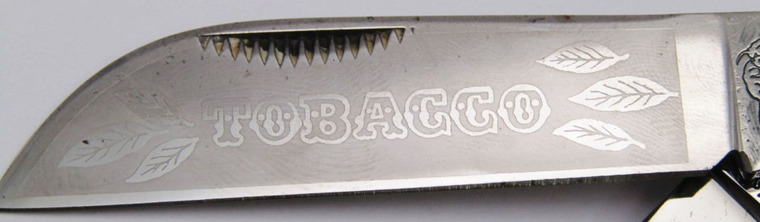 Tobacco Etch with Fighting Dogs stamp; Tobacco Leaf Shield with Tobacco written inside; Near Mint Condition!