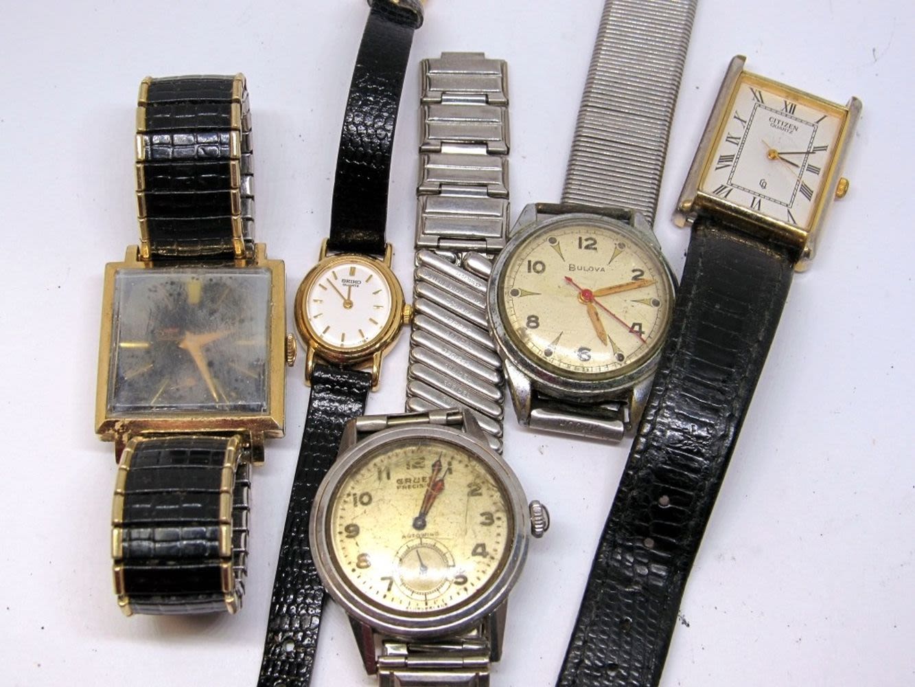 SEIKO, CITIZEN, BULOVA FACE, GRUER, SPEIDEL. UNTESTED. FOR PARTS REPAIR.
