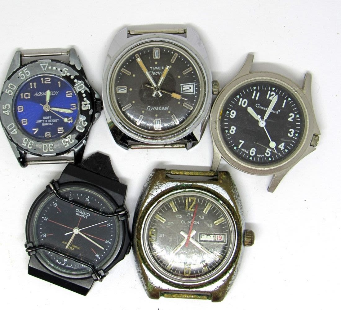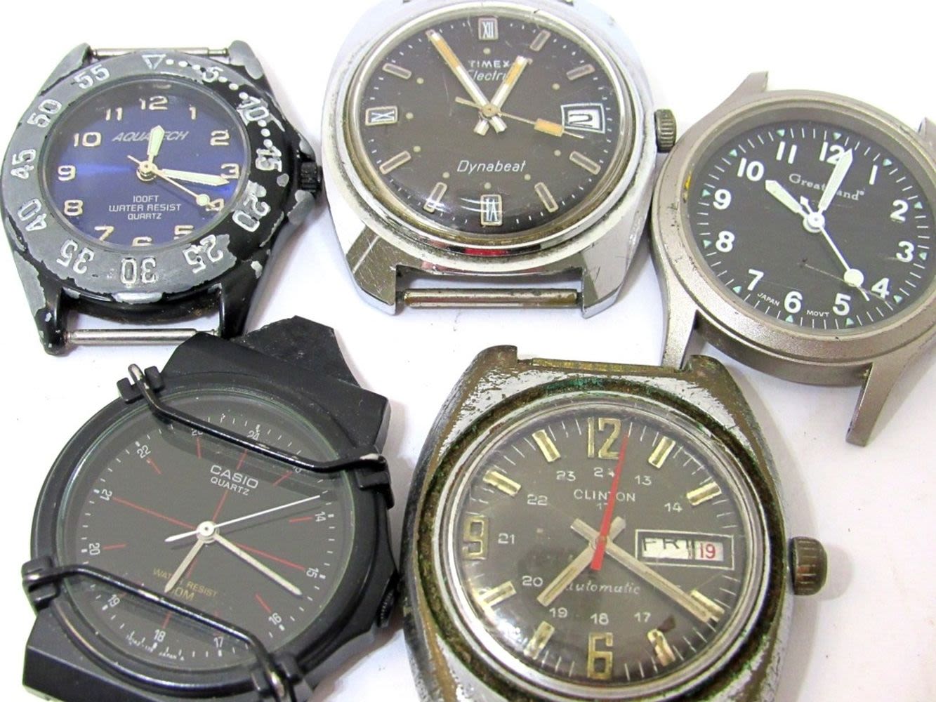 CLINTON, CASIO, TIMEX, GREATLAND, AQUATECH. UNTESTED.