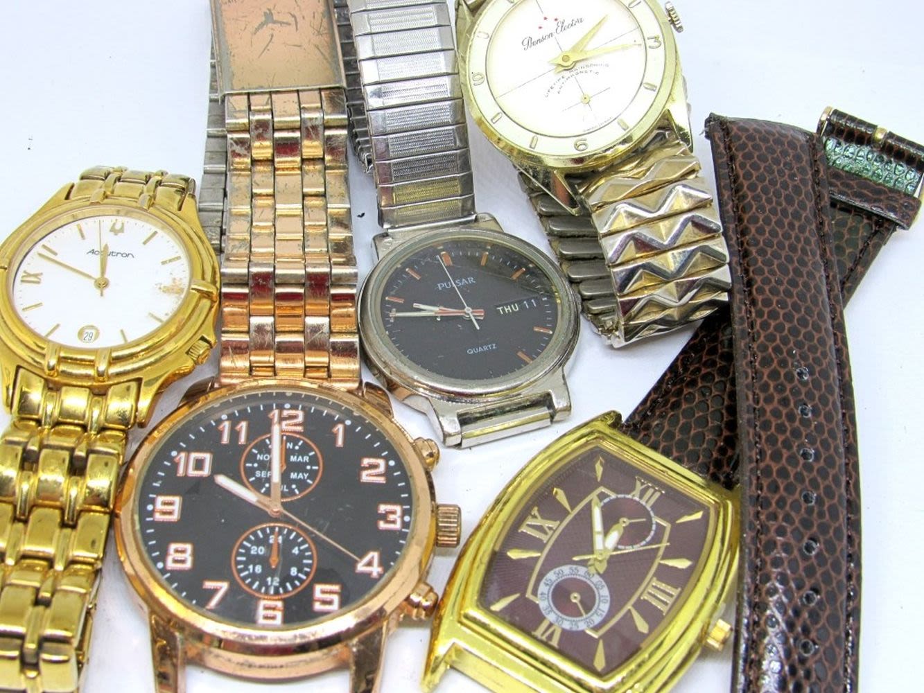 ACCUTRON, BENSON ELECTRA, PULSAR. UNTESTED. FOR PARTS REPAIR.