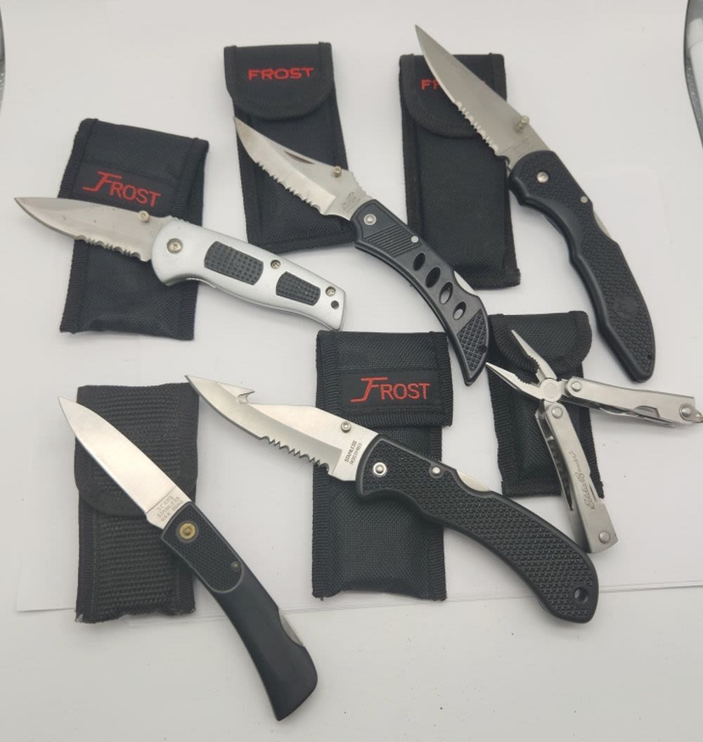 (4) FROST CUTLERY (1) SEARS (1) EDDIE BAUER multi tool