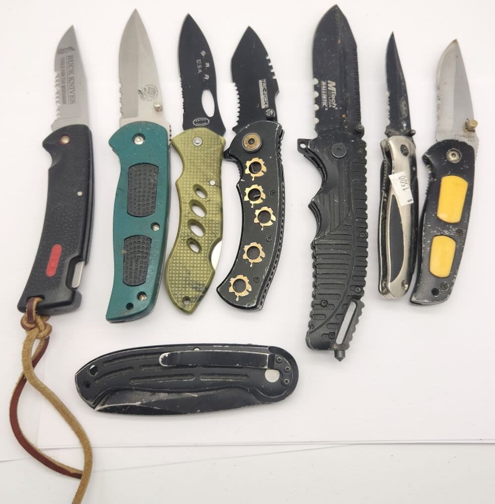 BUCK 450 nice, SHEFFIELD, TAC-FORCE, NORTH AMERICAN HUNTING CLUB, MTICH BALLISTIC, MAGNUM, STAINLESS STEEL 440, S.A.R. USA – USED LOT but MANY LIGHTLY USED