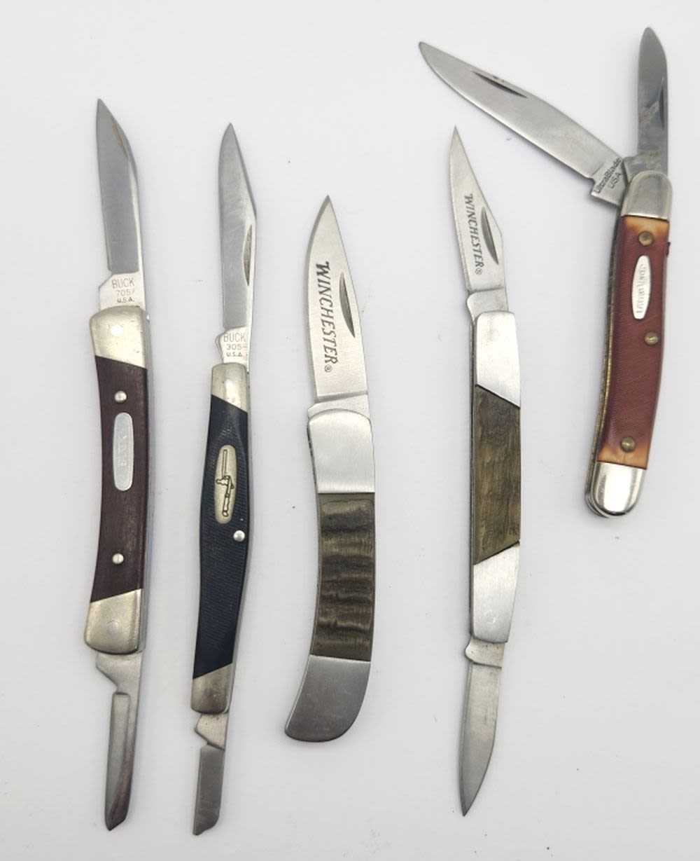 BUCK 705, ULTRA BLADE, BUCK 305 with broken blade, (2) WINCHESTER