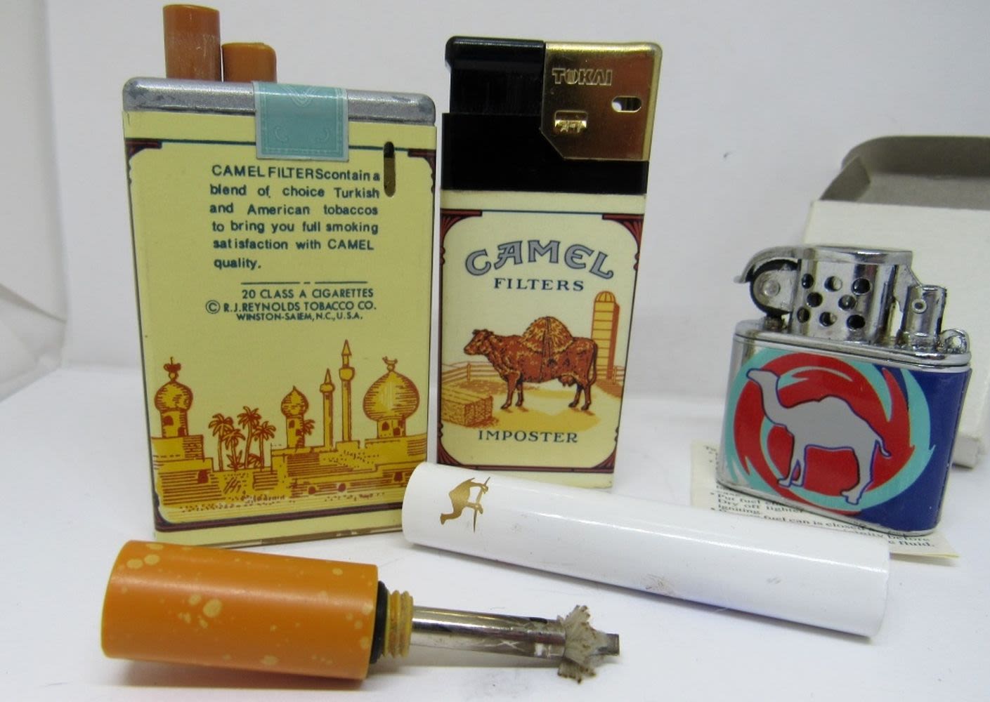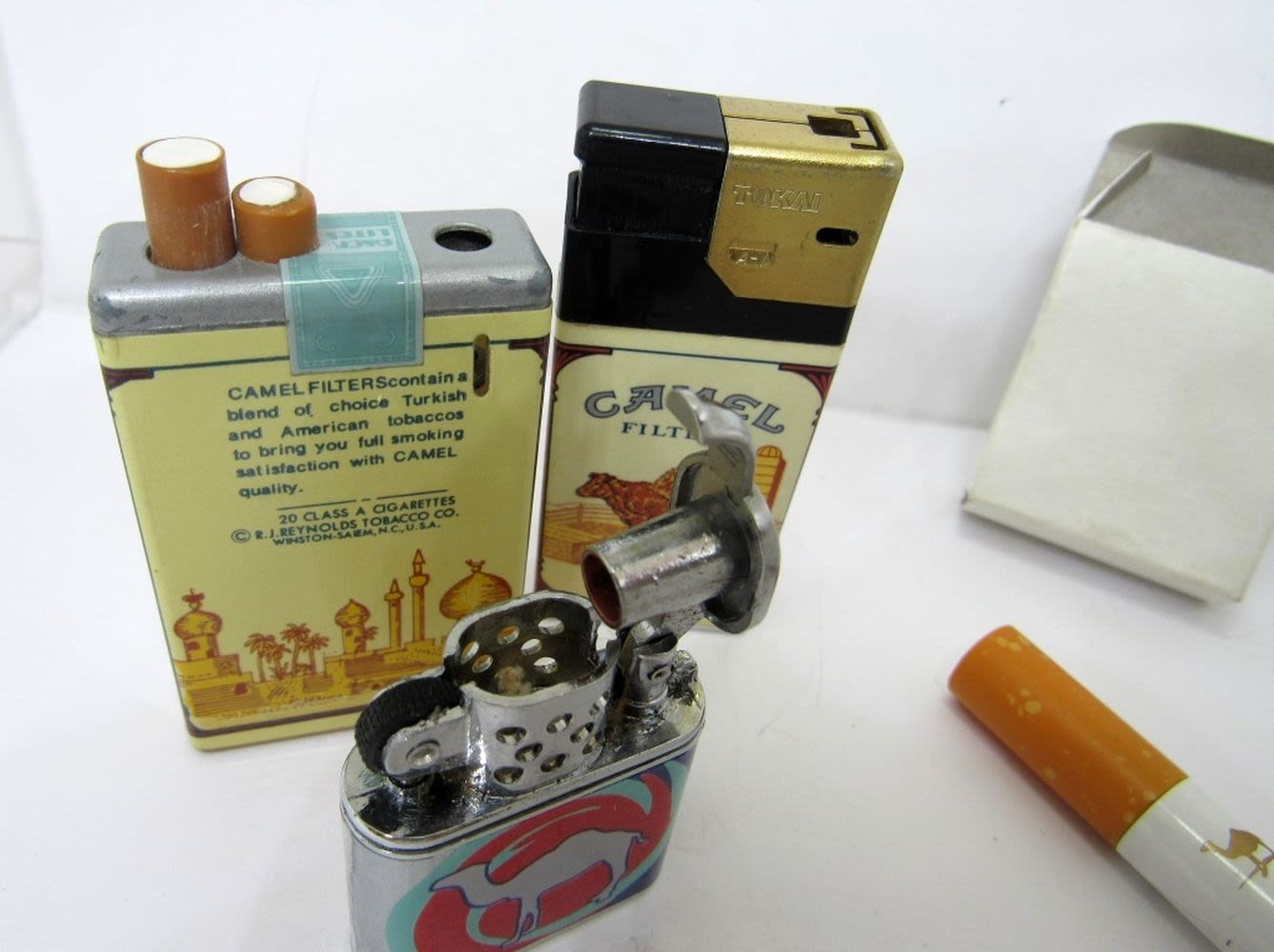 TWO PLASTIC LIGHTES, ONE METAL LIGHTER, AND ONE CIGARETTE CLEANER ITEM