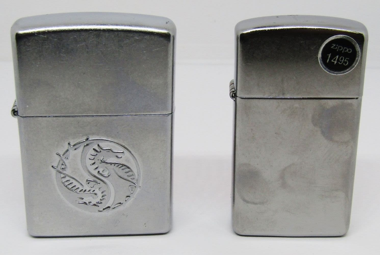 ONE SLIM 2008 ZIPPO, ONE CHROME WITH DRAGON 2006, IN BOXEX