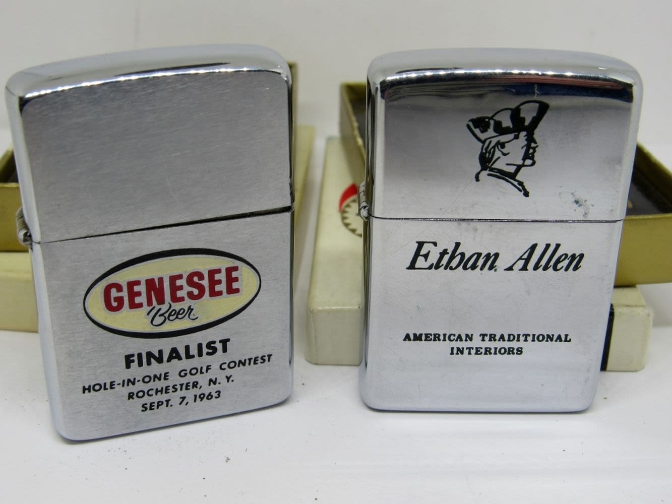 BEER & ETHAN ALLEN WITH ORIGINAL BOXES! 1950s AND 1970s. ONE IS A NO. 250 HIGH POLISH LIGHTER