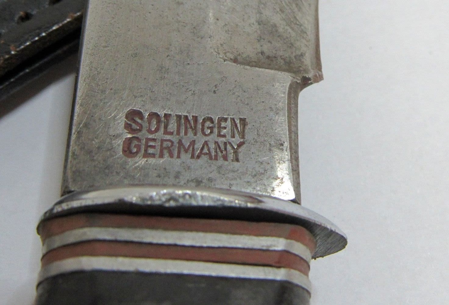 BLADE MARKED “55” & “SOLINGEN GERMANY”; SHEATH MARKED “MADE IN GERMANY”;