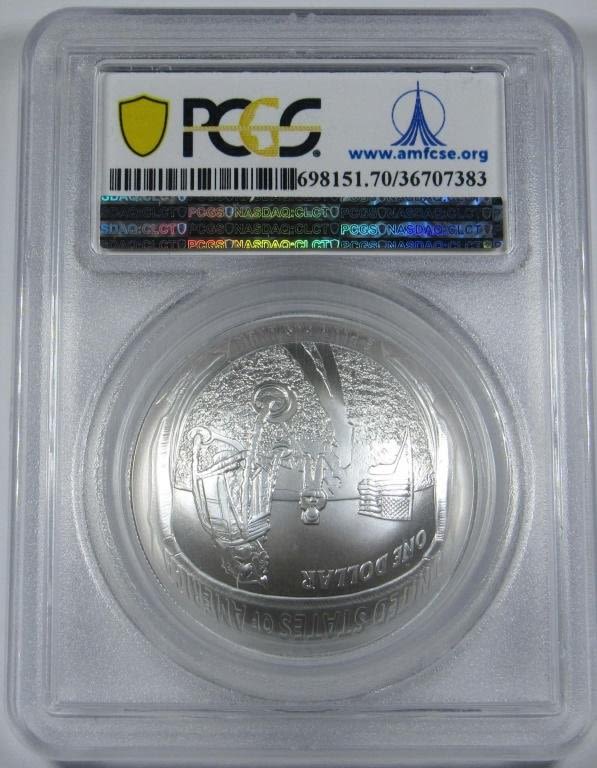 COMMEMORATIVE SILVER DOLLAR, 50TH ANNIVERSARY, FIRST DAY OF ISSUE.