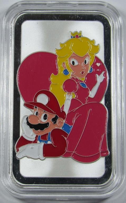BULLION TRADES COLORED ENAMEL NINTENDO 64 MARIO AND PRINCESS PEACH HEART DESIGN.