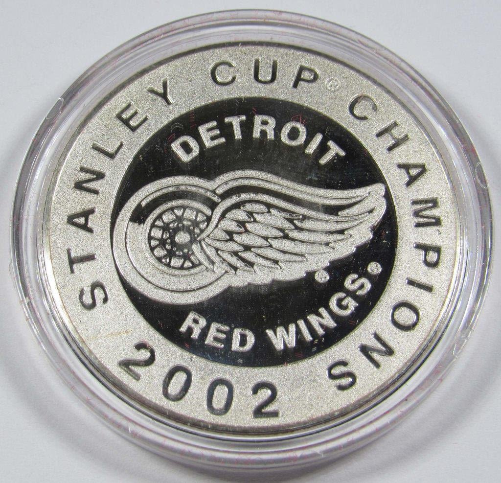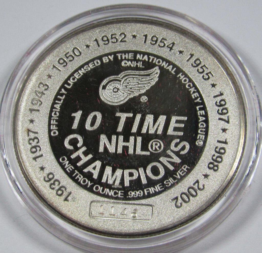 DETROIT REDWINGS SILVER ROUND, 10 TIME NHL CHAMPIONS, WITH CASE AND COA.