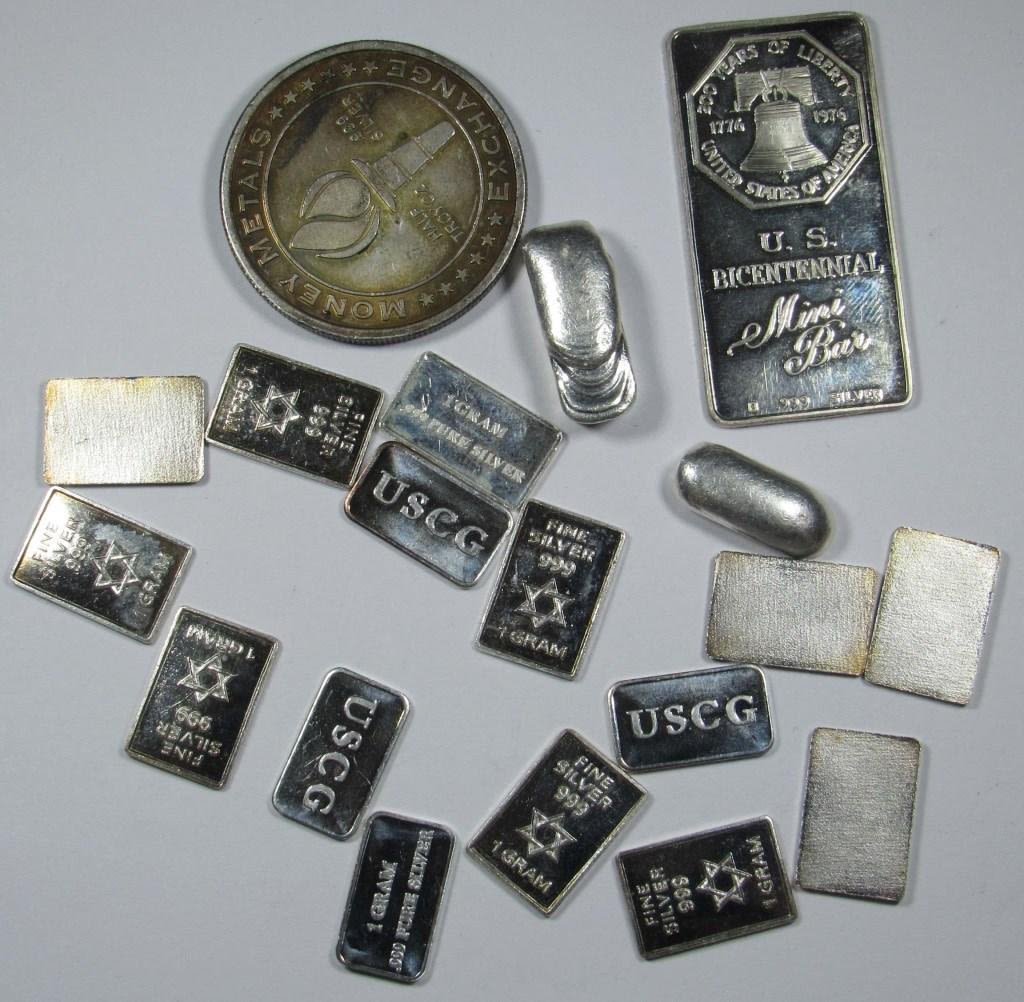 1- 1/2oz ROUND, 15- 1 GRAM BARS, AND 3 BARS WEIGHING 21.54 GRAMS TOGETHER.