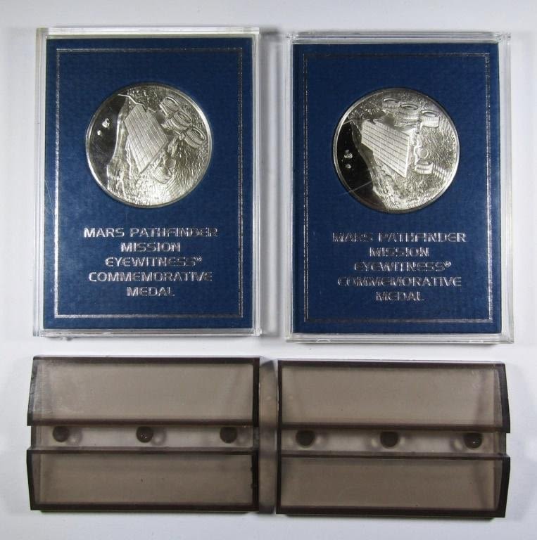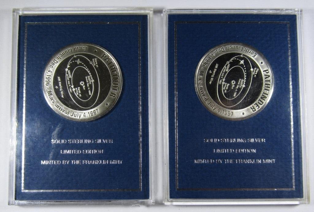 MARS PATHFINDER MISSION EYEWITNESS COMMEMORATIVE MEDAL, SOLID STERLING SILVER, FRANKLIN MINT, WITH DISPLAY BASES, NO BOX OR COA.