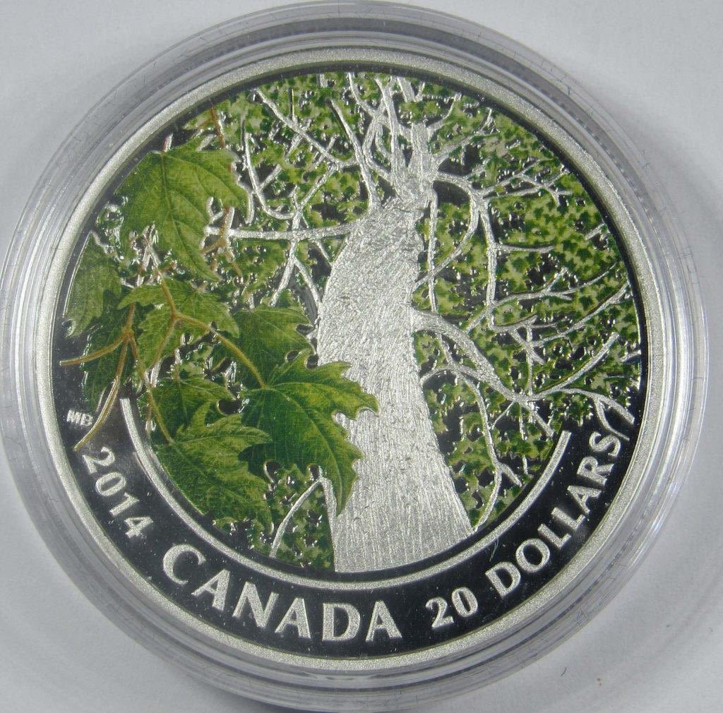 SILVER PROOF COIN, MAPLE CANOPY SPRING SPLENDOUR, WITH CASE AND COA.