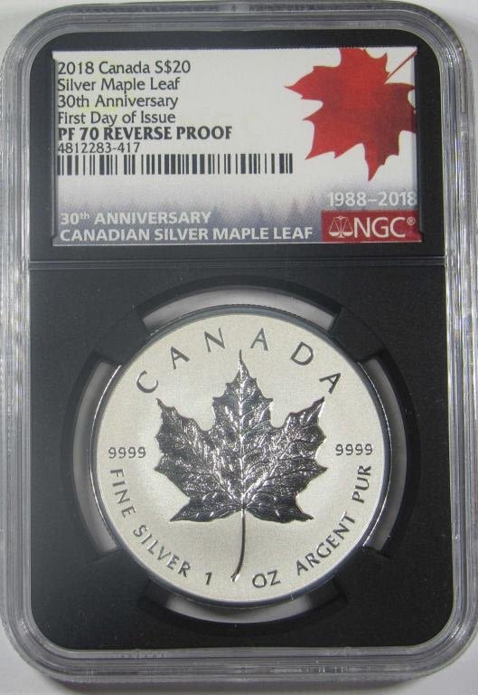 REVERSE PROOF 1oz SILVER COIN, FIRST DAY OF ISSUE, 30TH ANNIVERSARY, WITH BOX AND COA.