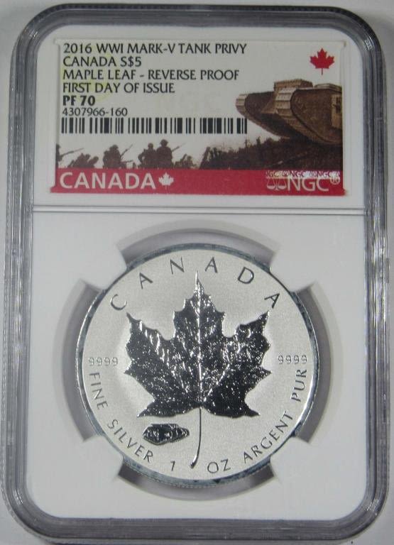 1oz SILVER, REVERSE PROOF, FIRST DAY OF ISSUE, WWI MARK-V PRIVY.