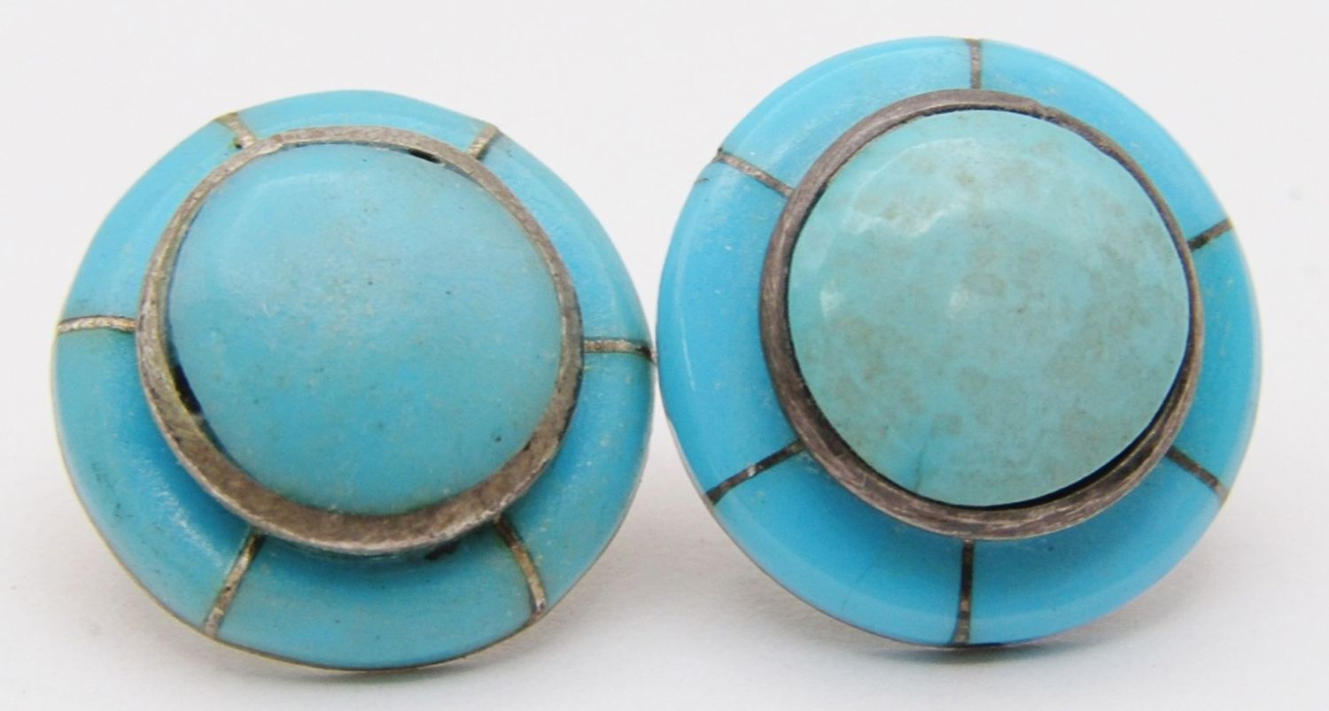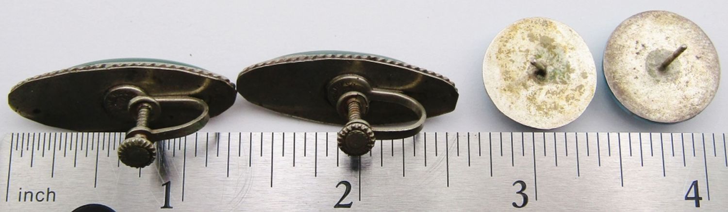 STUDS WITH TURQUOISE STONES & (1)TWISTBACK JADITE-TOTAL 11 DWT