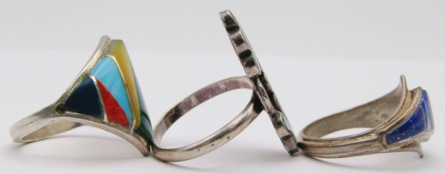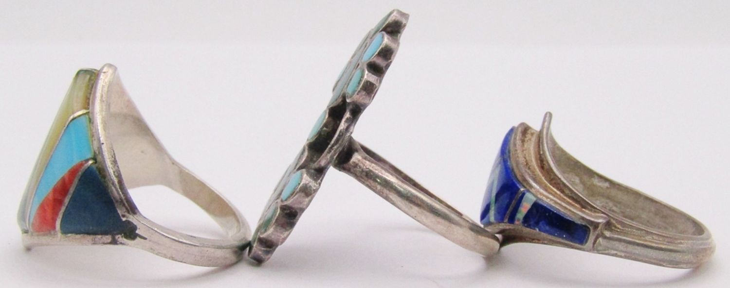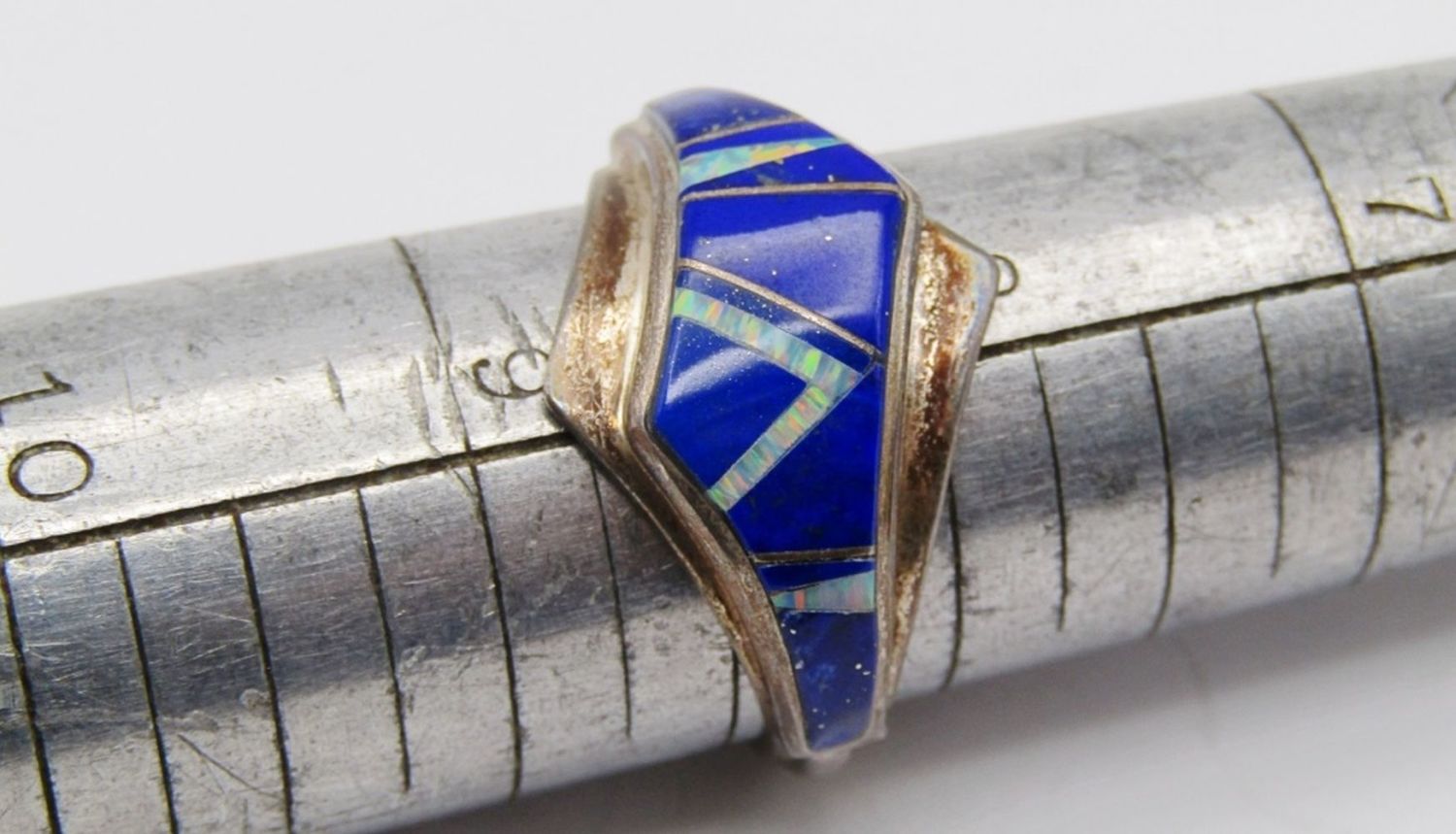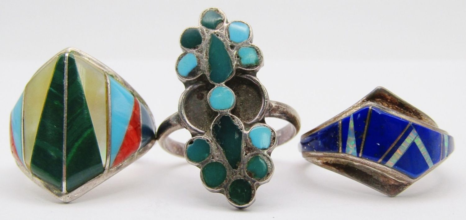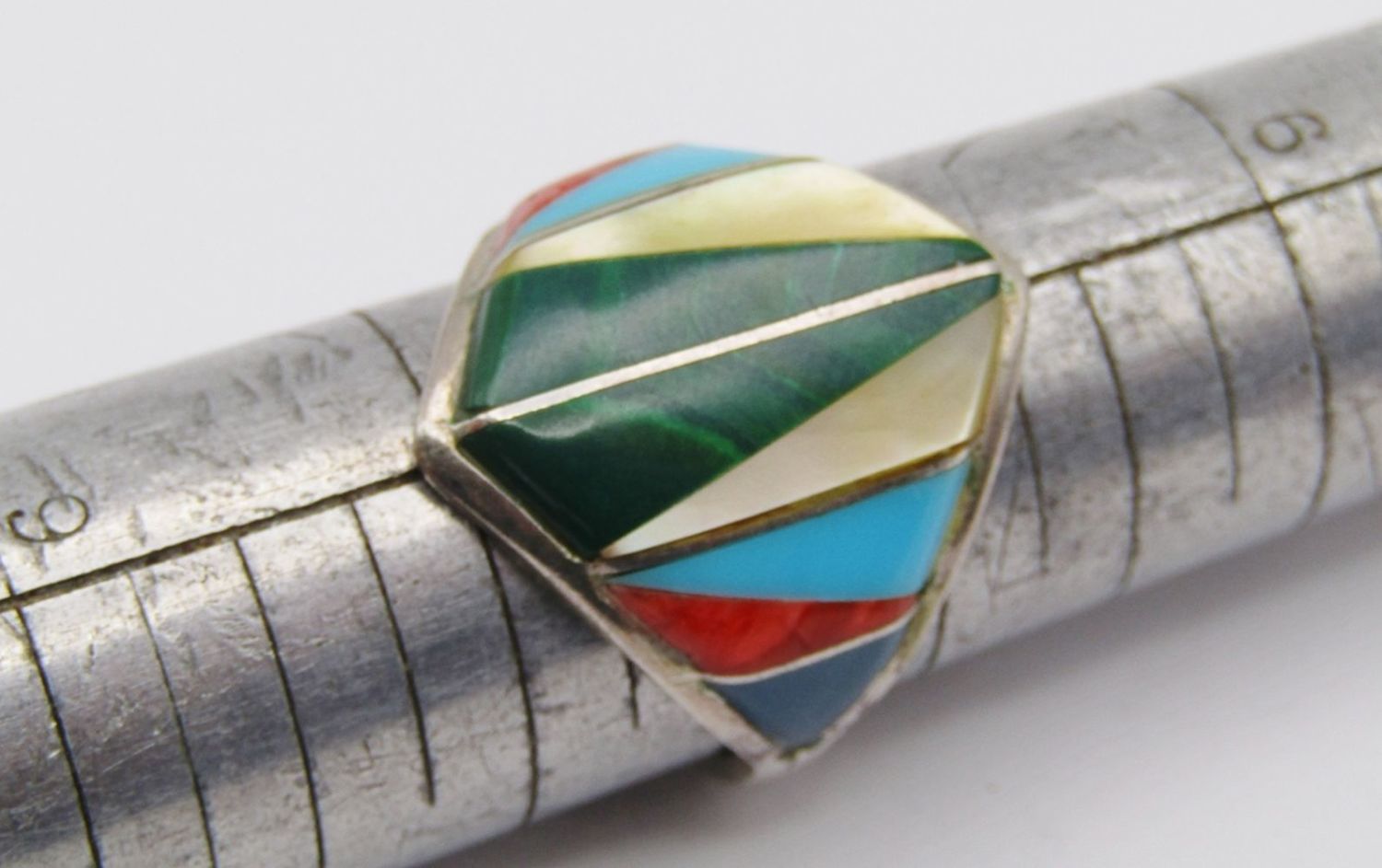 STONE DESIGNS-TURQUOISE-RED CORAL-MALACHITE-LAPIS-OPAL-RING SIZES 7.5-8.5-TOTAL 9 DWT