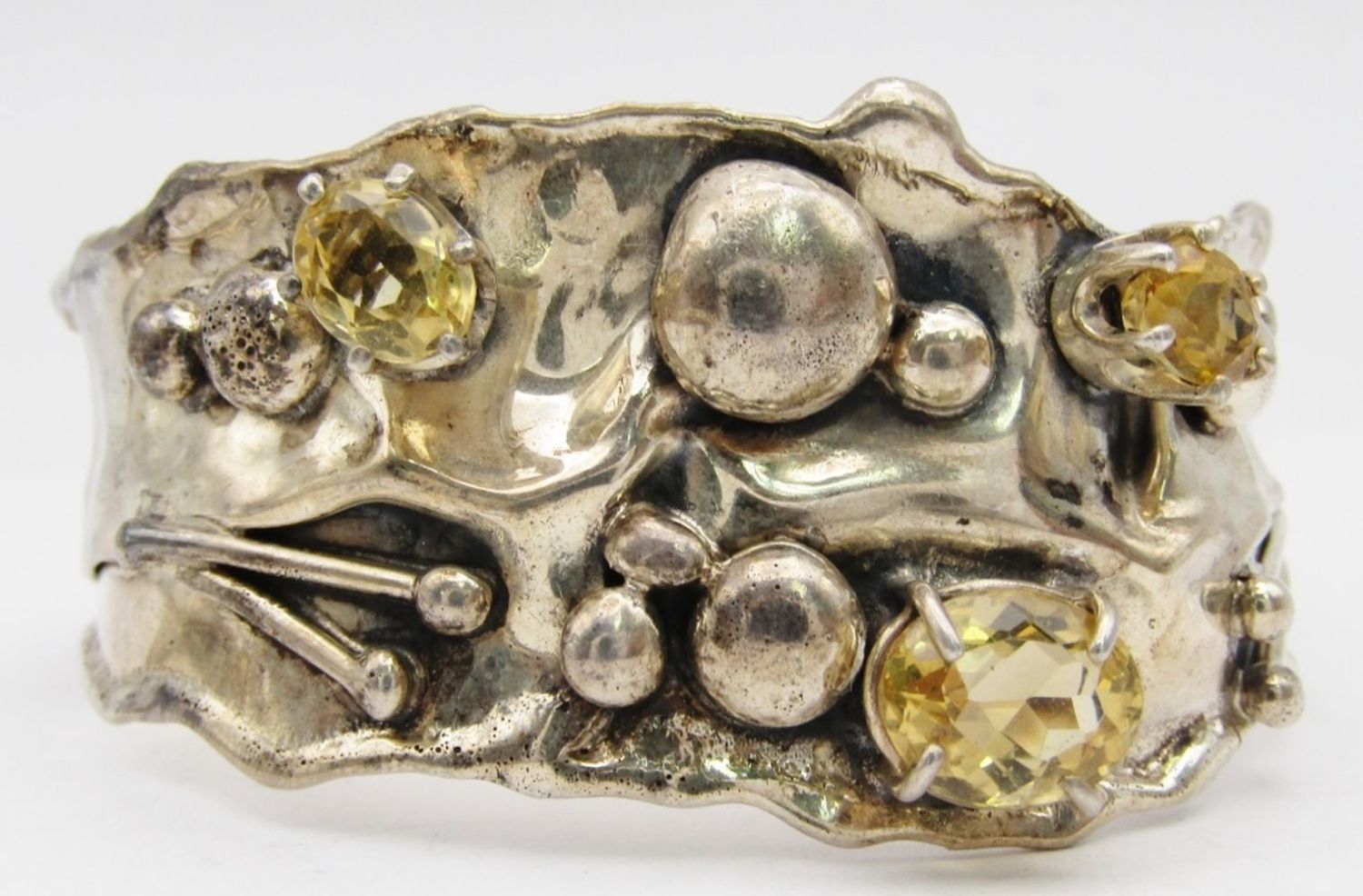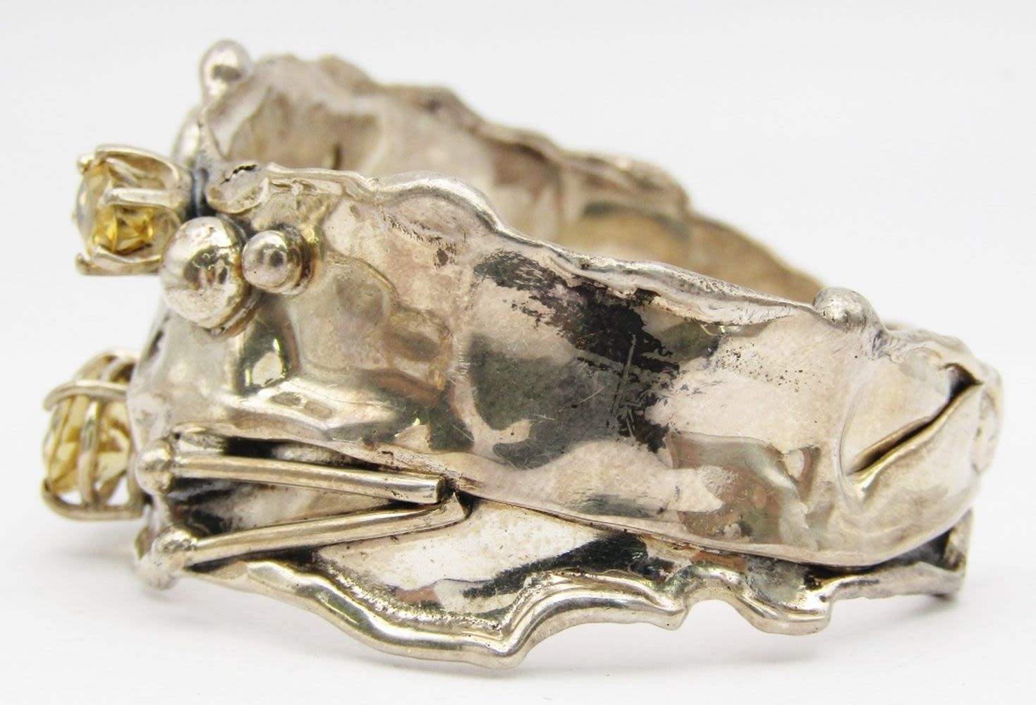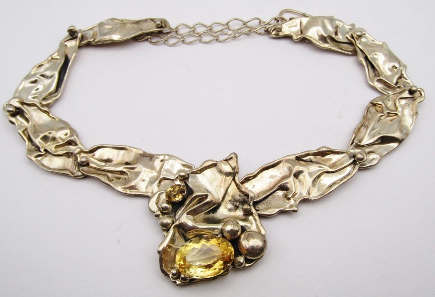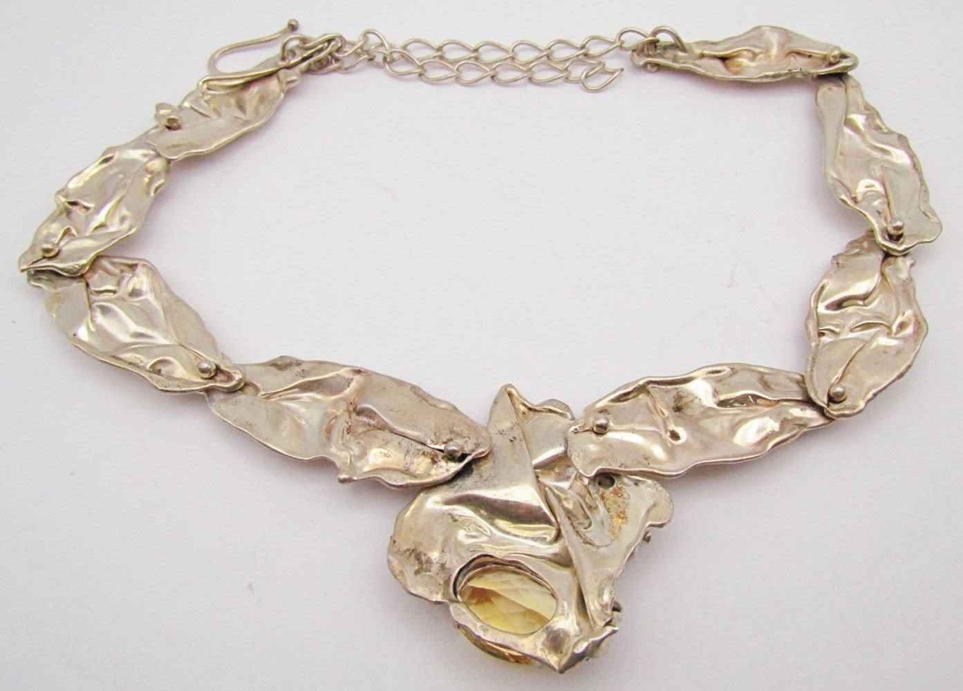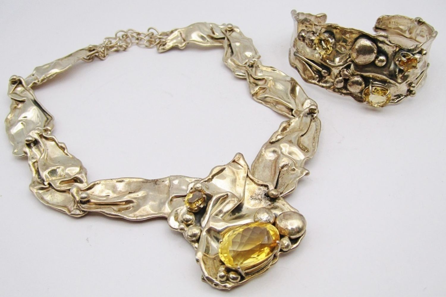 YELLOW STONES WITH MATCHING CUFF-NECKLACE MEASURES 18 INCHES-CUFF MEASURES 7.5 INCHES WITH GAP-TOTAL 50 DWT