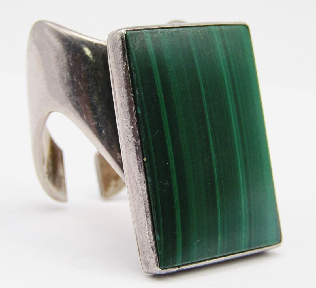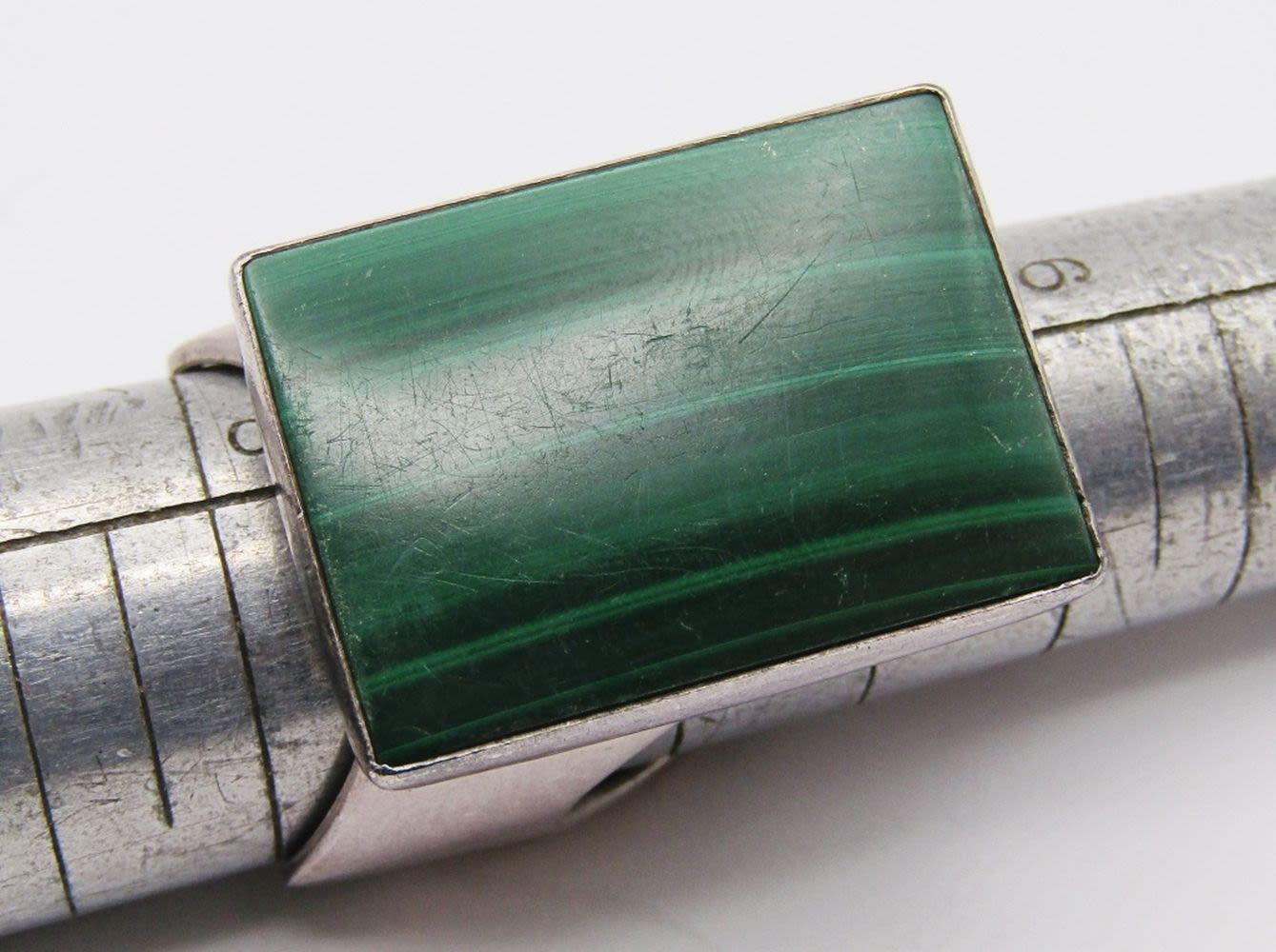 MALACHITE RECTANGULAR RING-SIZE 9-TOTAL 11 DWT