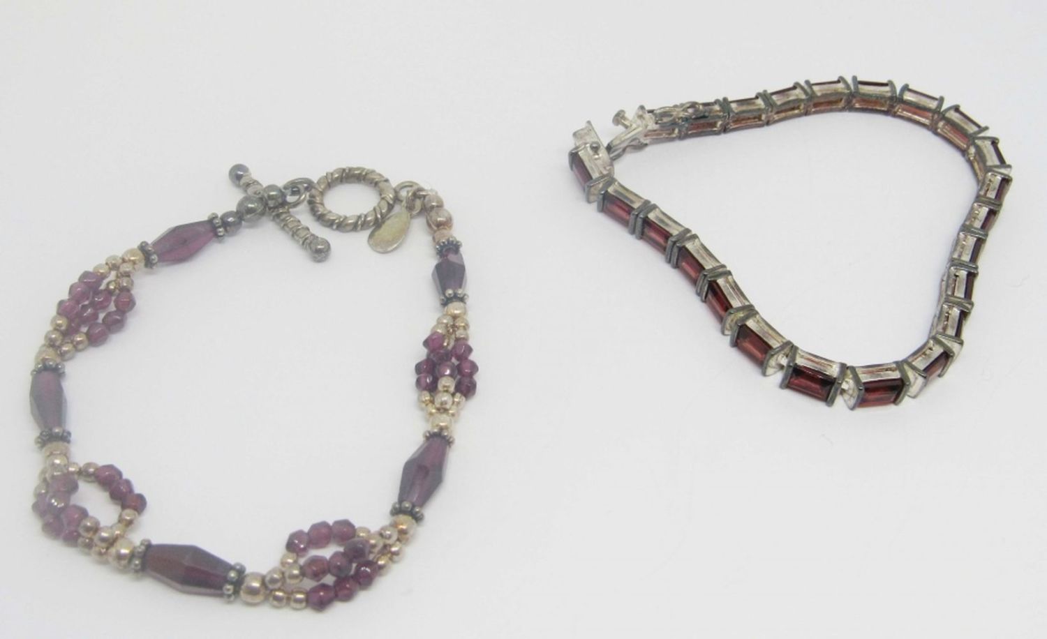 RED RETANGULAR STONES & (1)INDIA STERLING & PURPLE BEADS-TOTAL 18 DWT