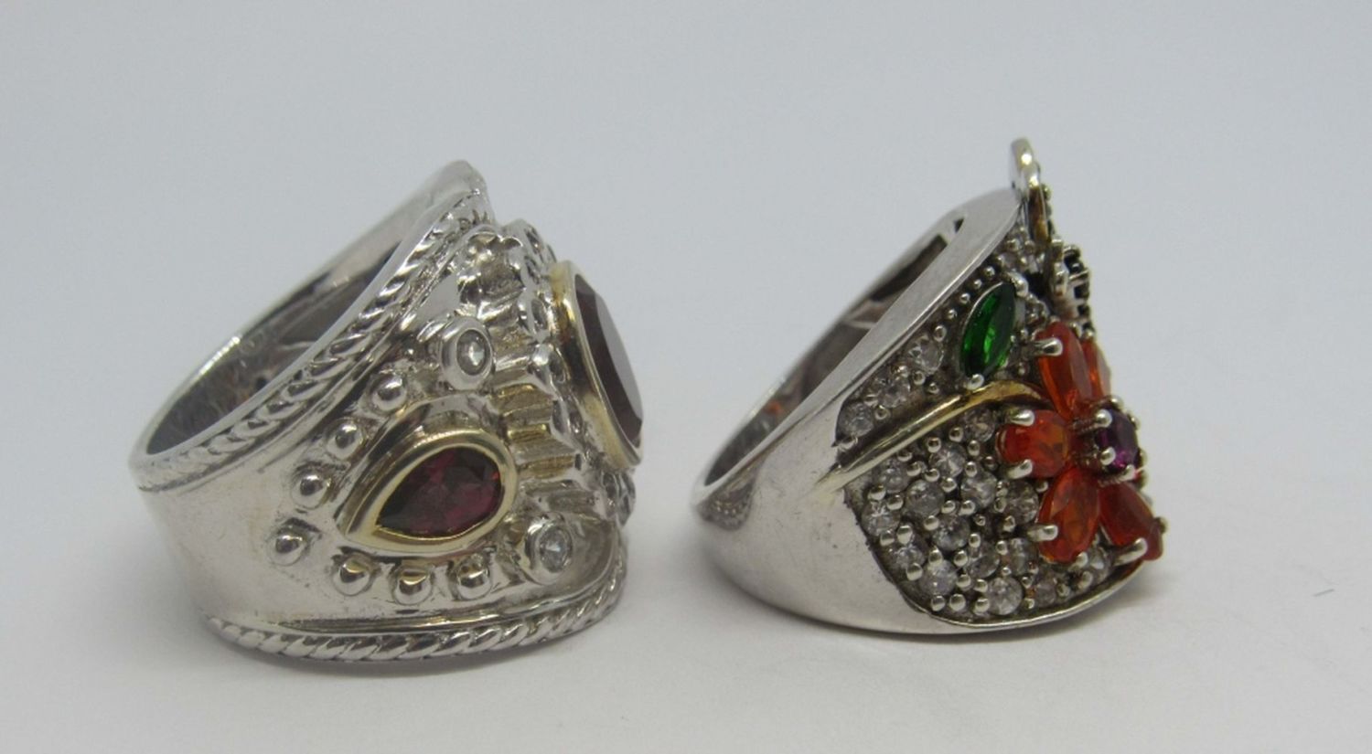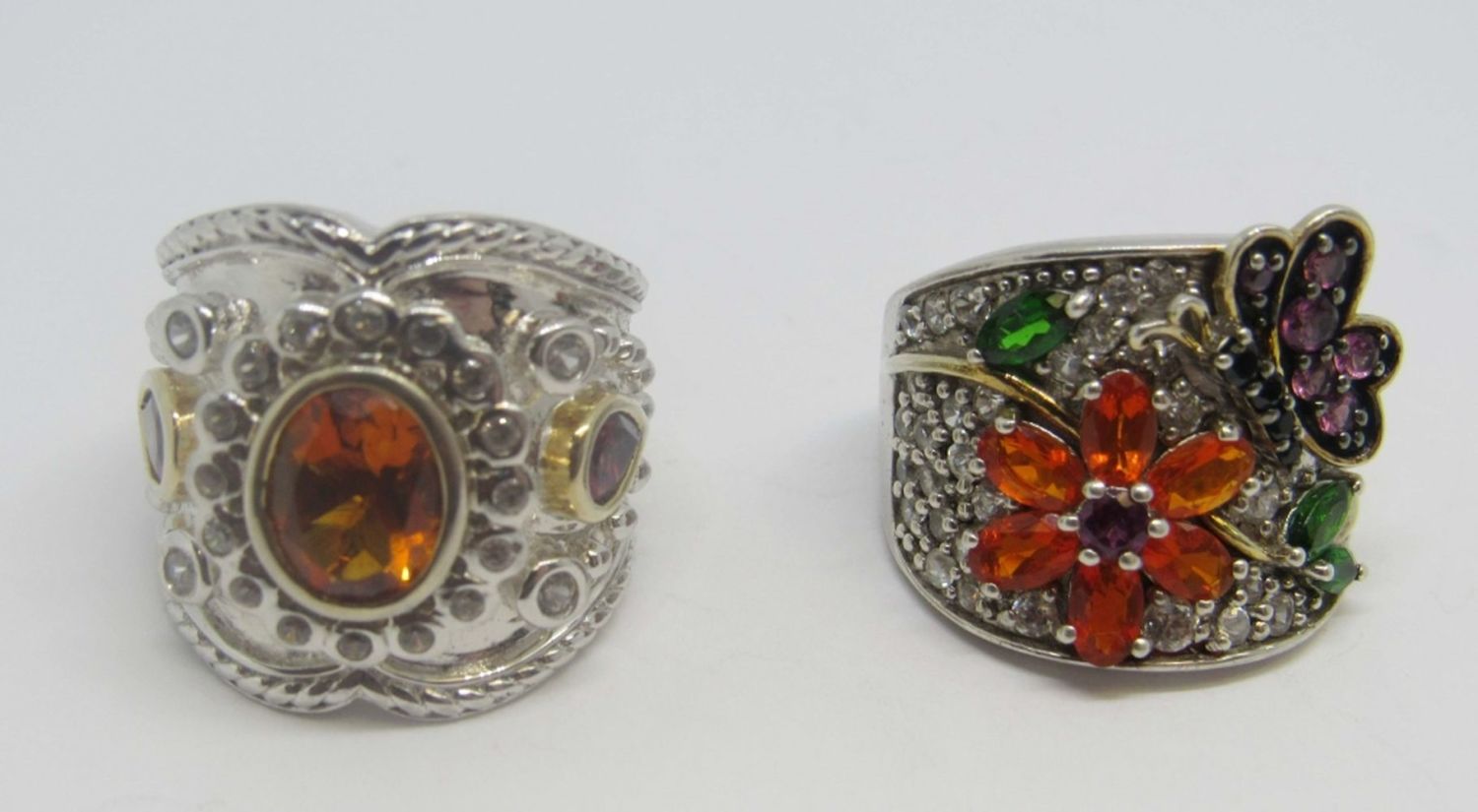 MULTI COLORED STONES-BOTH RINGS SIZE 6.5-TOTAL 15 DWT