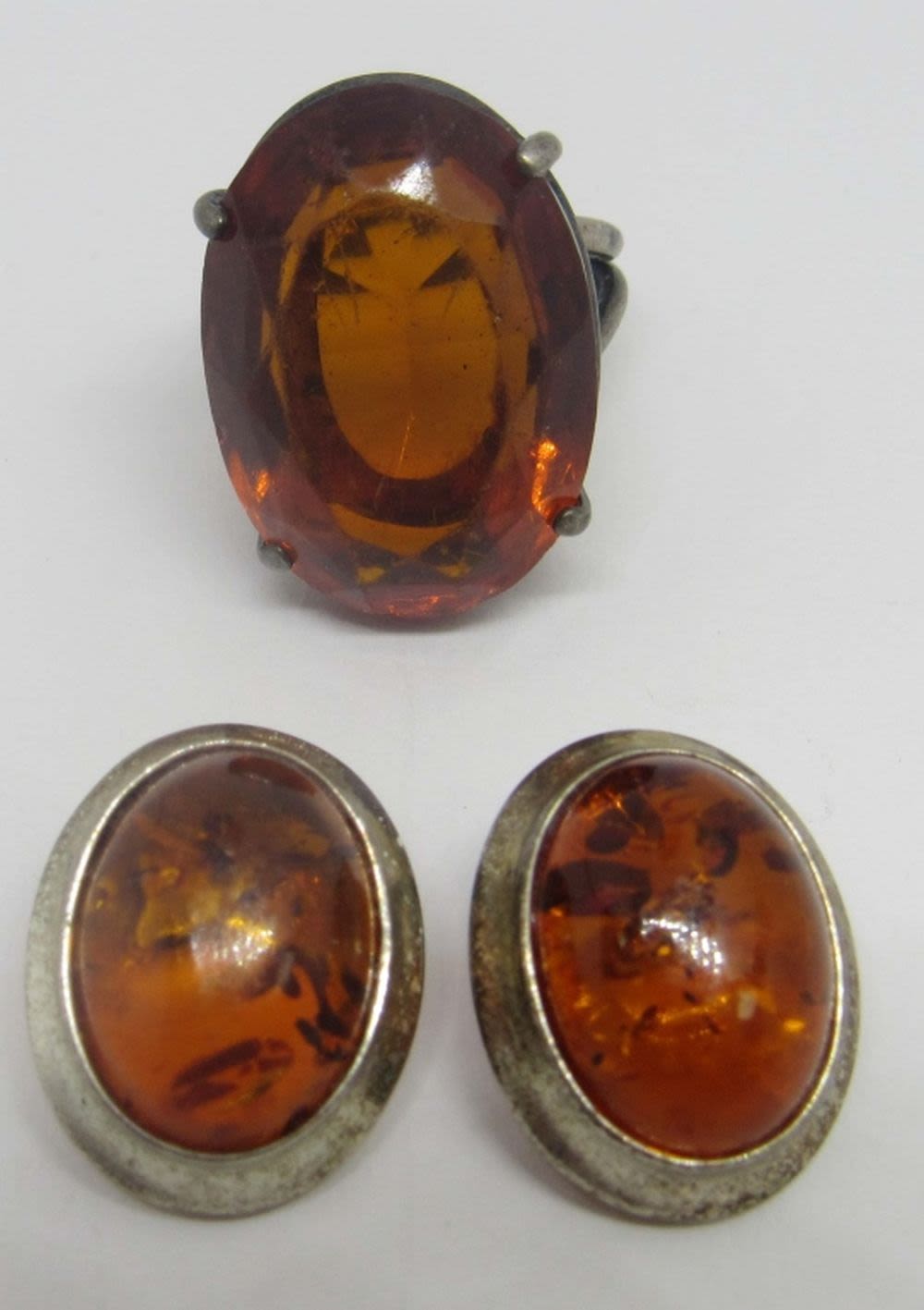 STONE PLUS BONUS PAIR OF PIERCED BALTIC AMBER EARRINGS-TOTAL 12 DWT