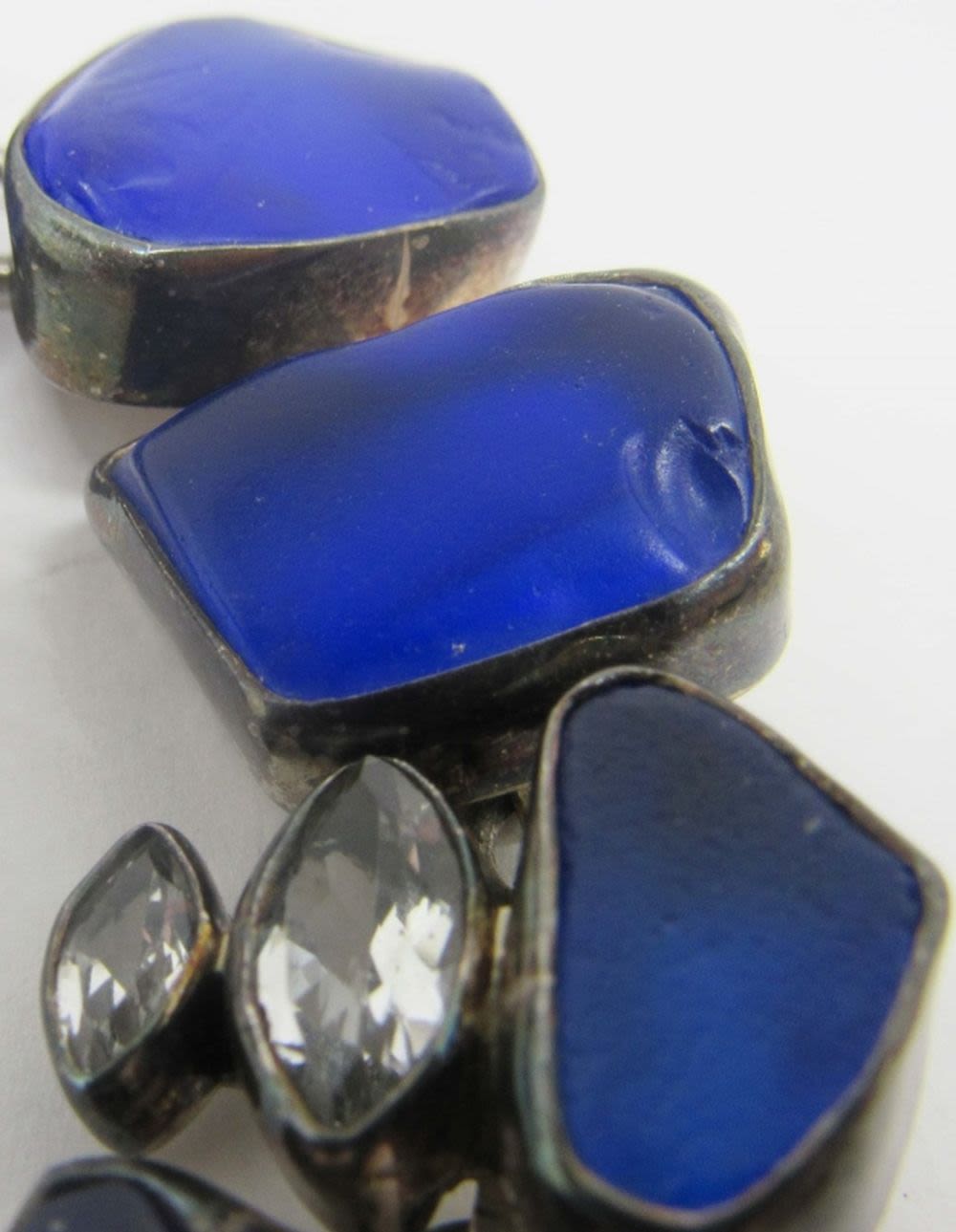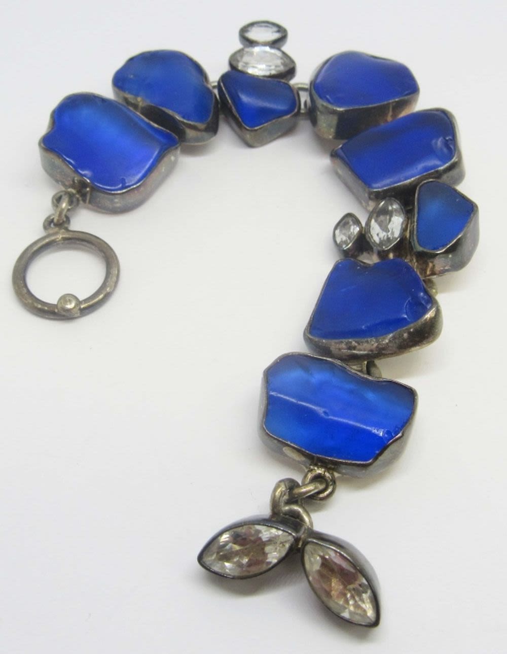 LARGE NAVY STONES CLEAR STONE ACCENTS-TOGGLE CLASP-MEASURES 7.5 INCHES-TOTAL 39 DWT