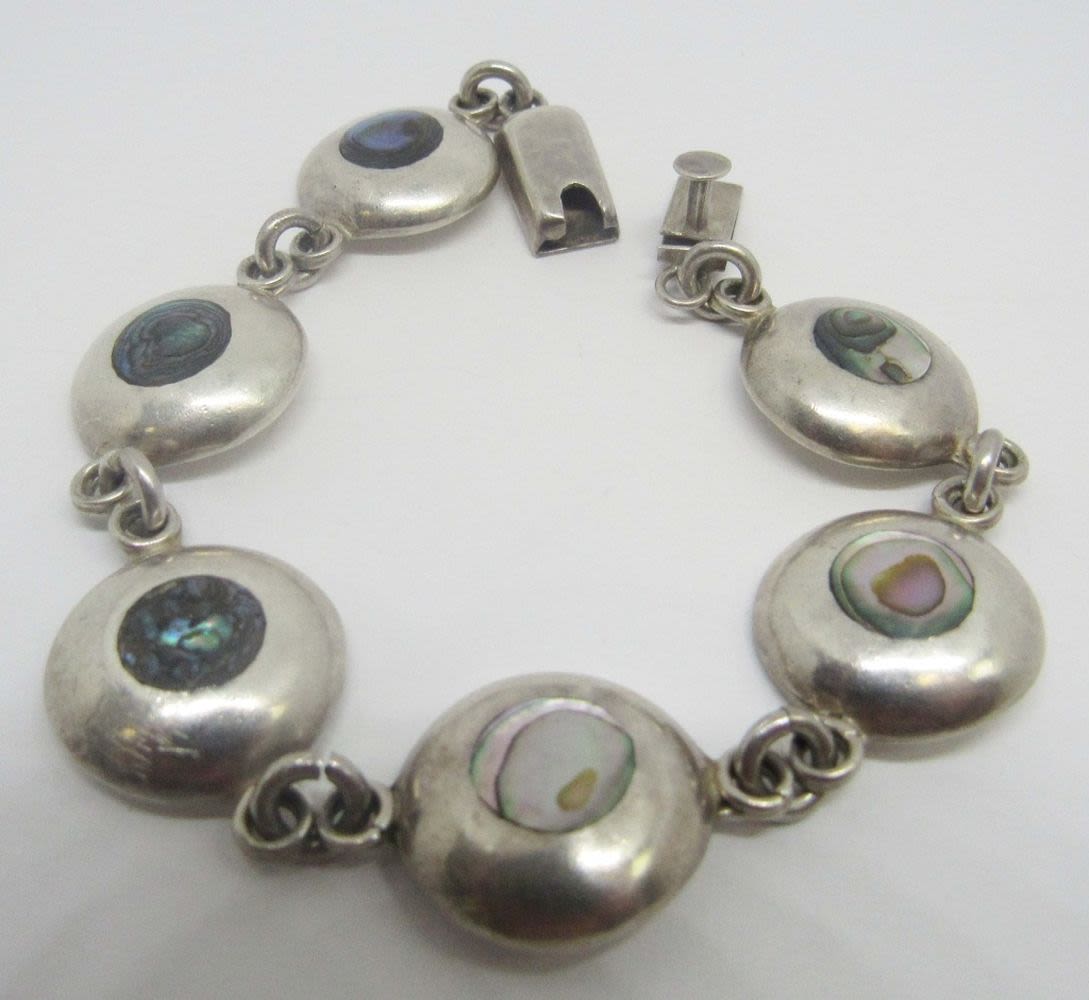 WITH ABILONE INLAY DESIGN-MEASURES 8 INCHES-TOTAL 18 DWT