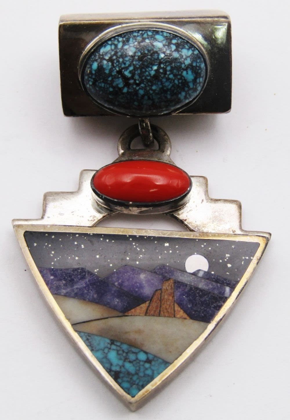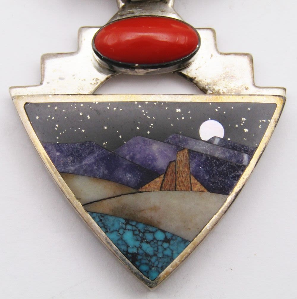 PENDANT WITH MULTI COLORED STONES-INLAY STONE DESSERT SCENE-TOTAL 23 DWT