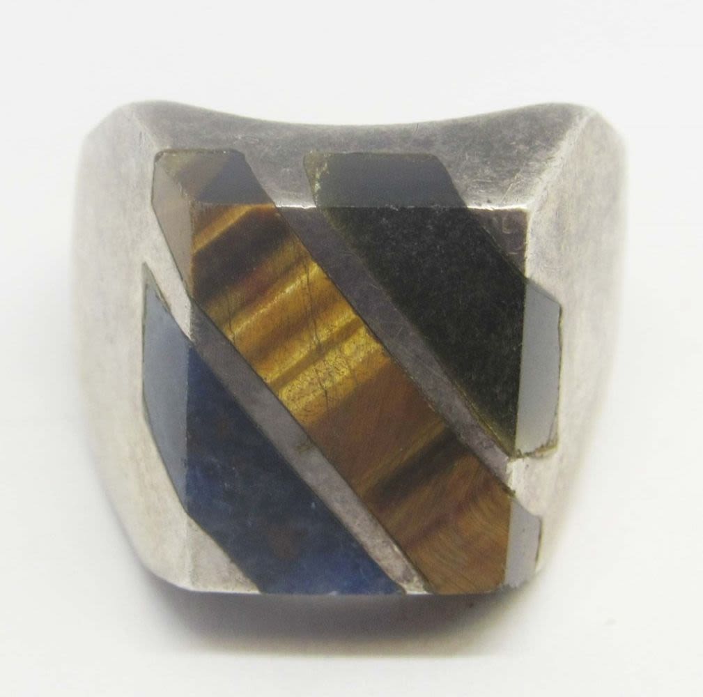TIGER EYE & LAPIS INLAY DESIGN-RING SIZE 10.5-13 DWT