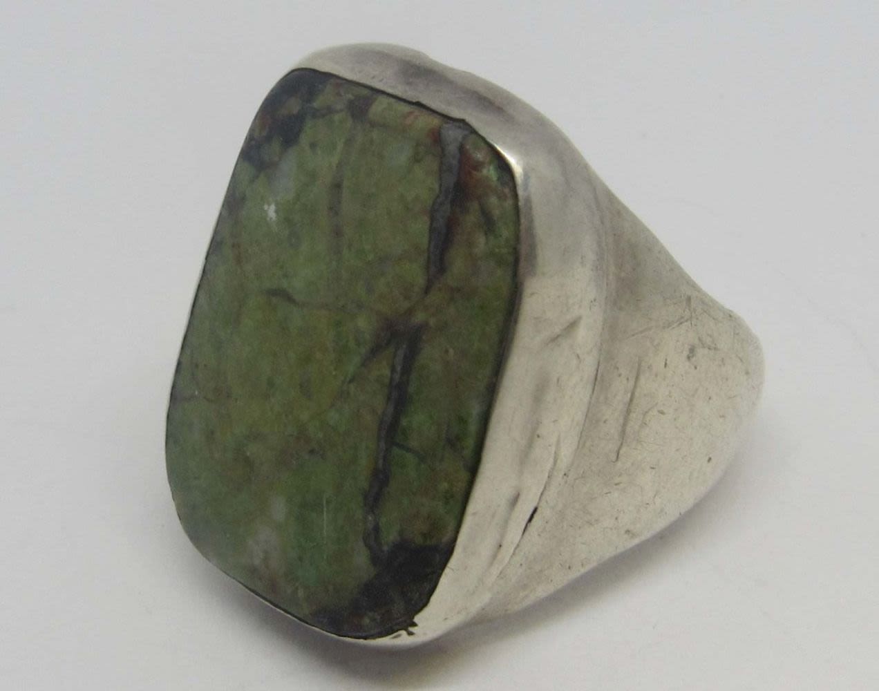 GREEN TURQUOISE CENTER STONE-RING SIZE 11-TOTAL 19 DWT