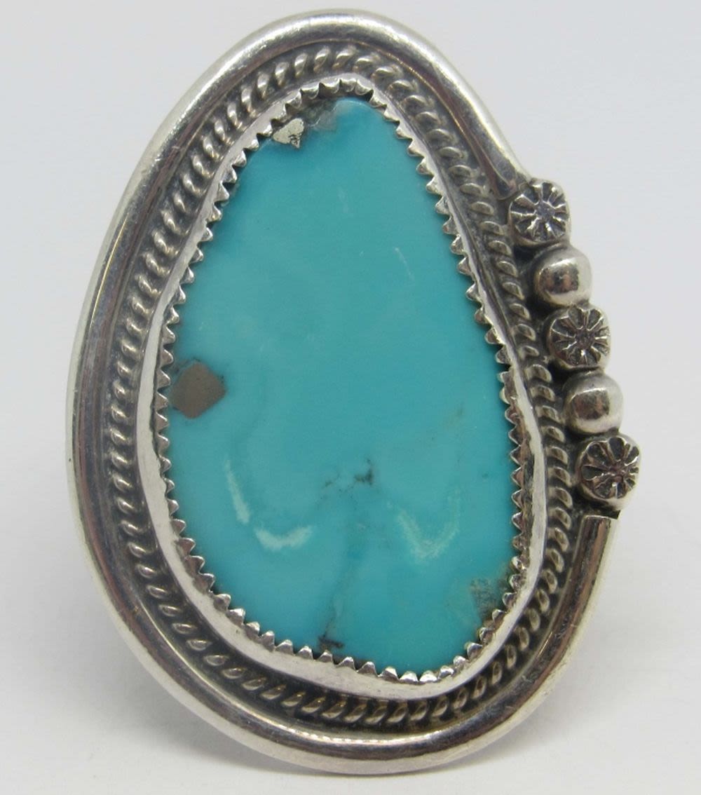WITH TURQUOISE CENTER STONE-SIZE SIZE 10-TOTAL 20 DWT