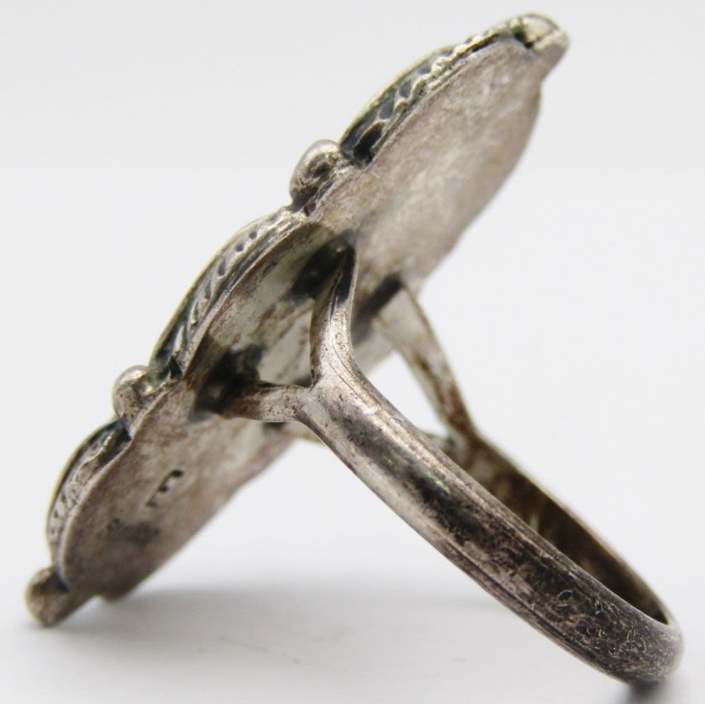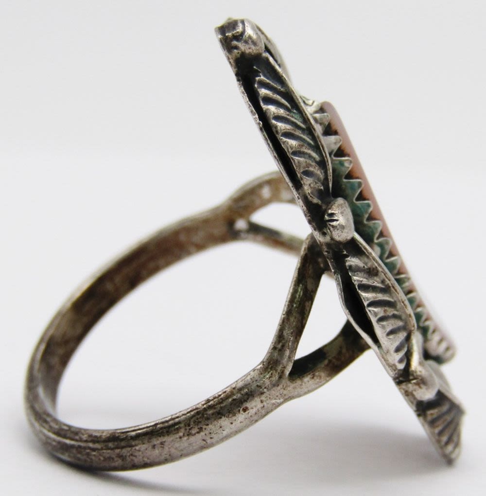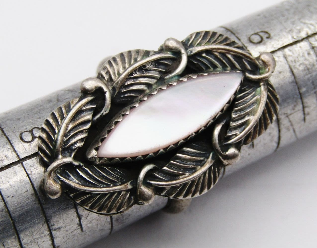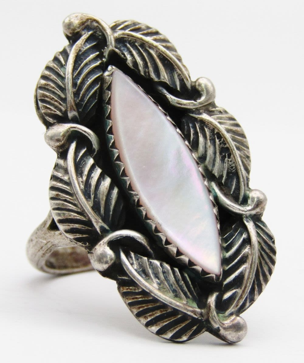 OF PEARL INLAY STONE-LEAF DESIGN-RING SIZE 7-TOTAL 4 DWT