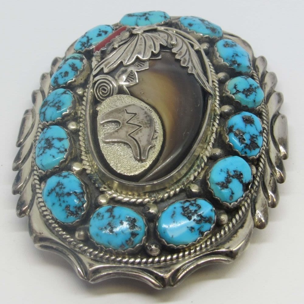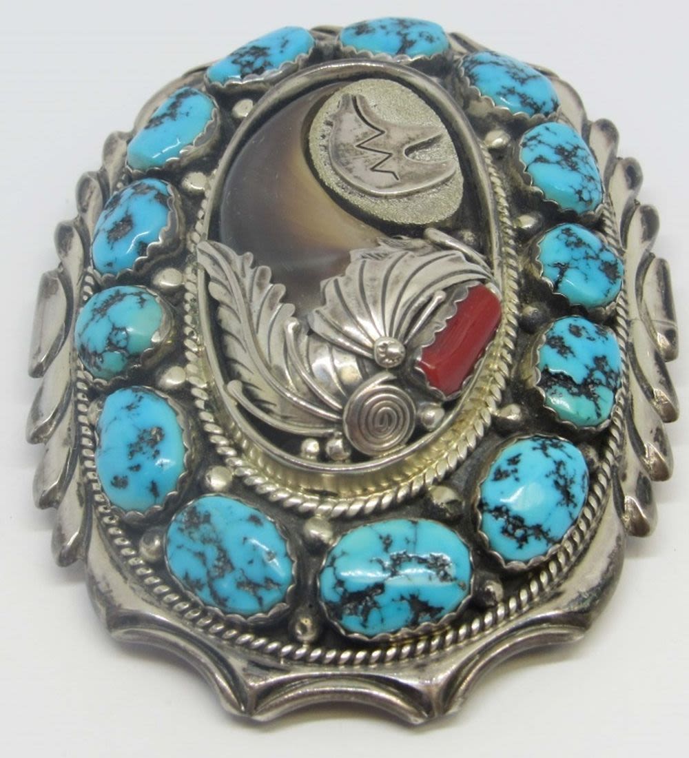 BUCKLE-LOADED WITH TURQUOISE STONES-CLAW! GORGEOUS PIECE! TOTAL 75 DWT