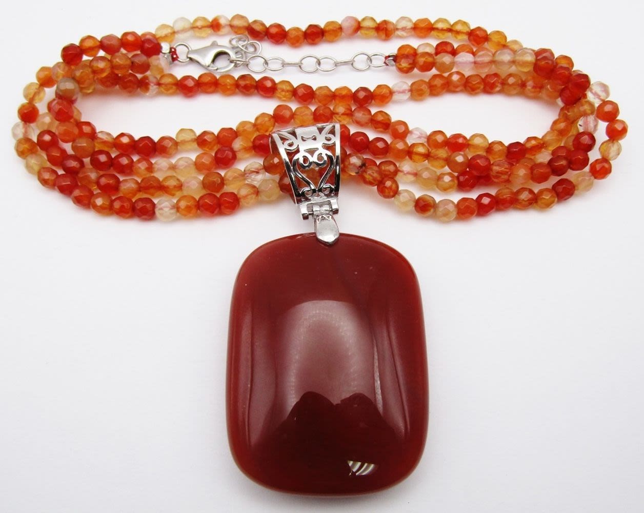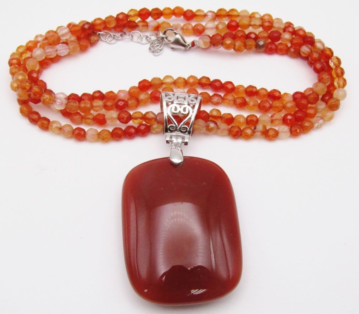 NECKLACE WITH 925 CLASP-WITH LARGE AMBER STERLING PENDANT-MEASURES 19.5 INCHES-TOTAL 34 DWT