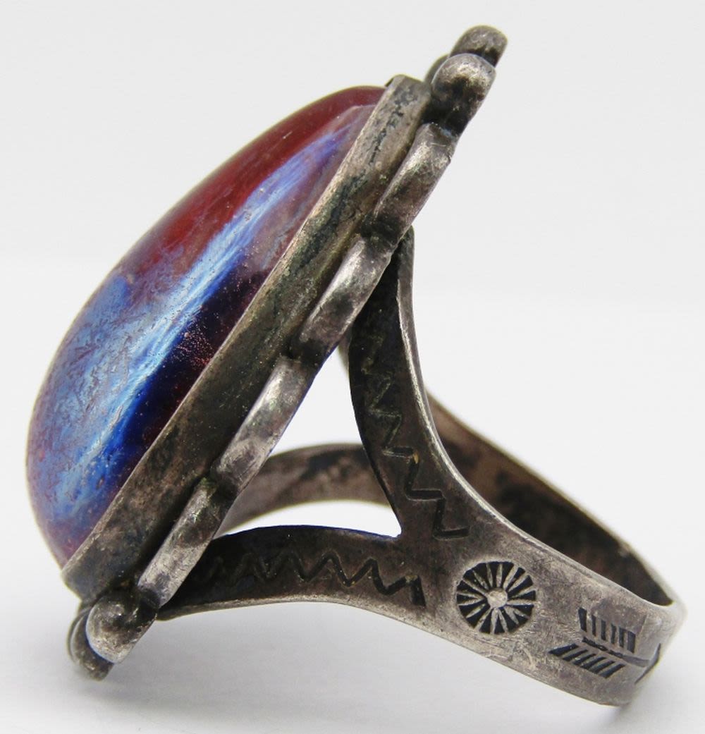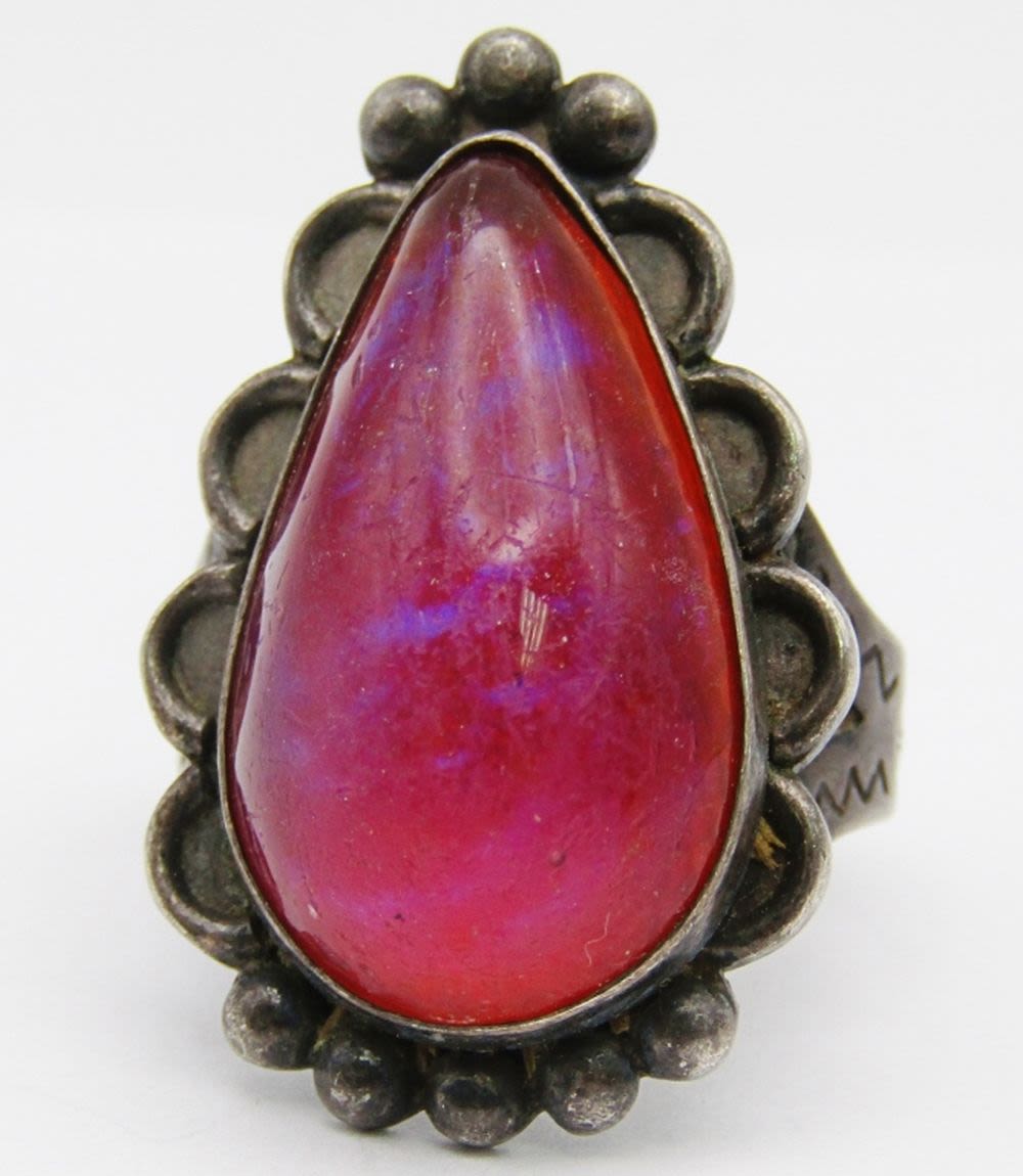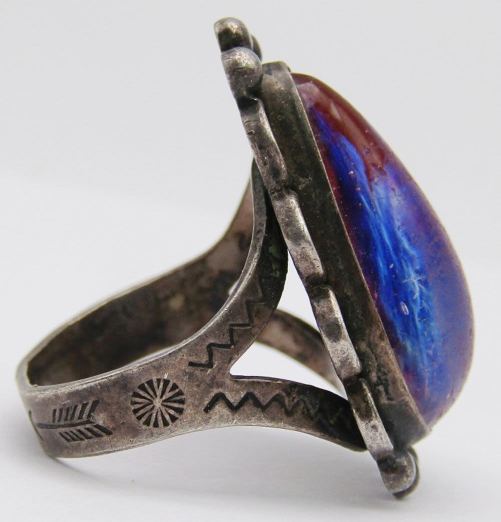 TRANSLUCENT MULTI COLORED PURPLE AND PINK CENTER STONE-RING SIZE 7-TOTAL 7 DWT