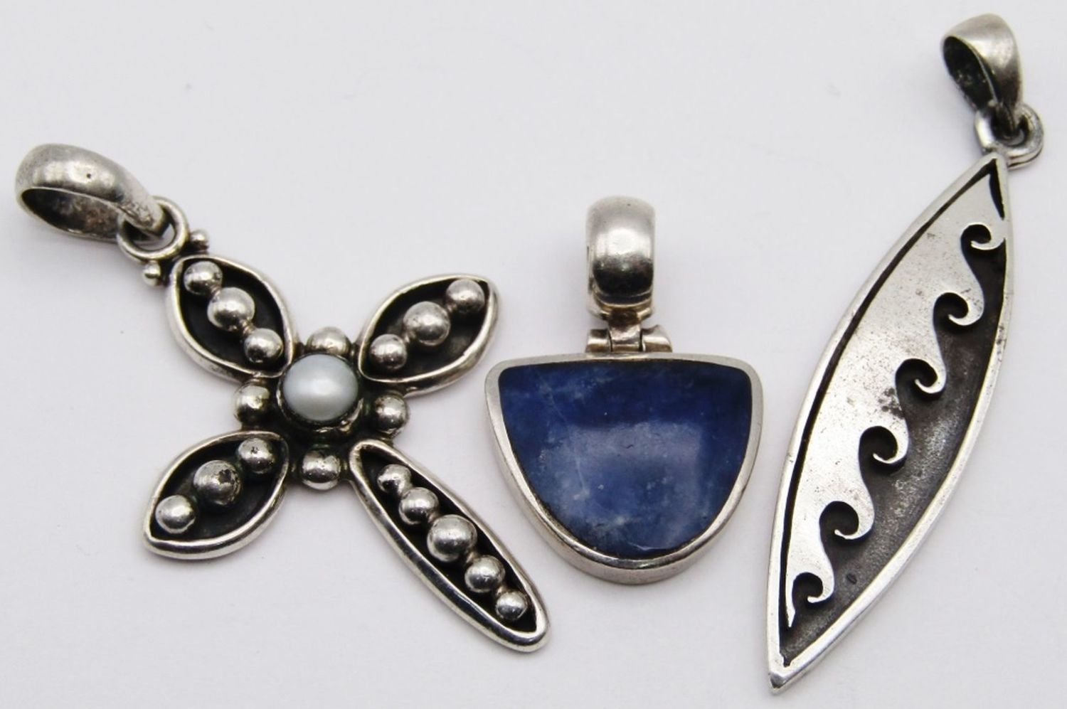 (1)WITH LAPIS INLAY DESIGN (1)CROSS WITH PEARL & MORE! TOTAL 11 DWT