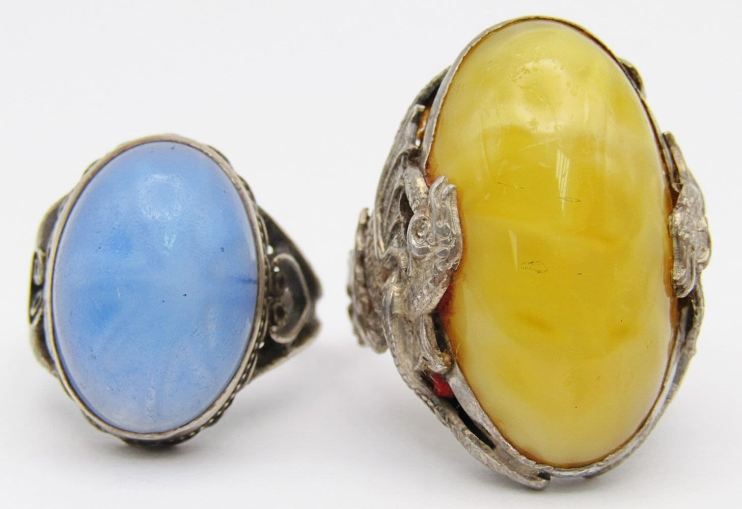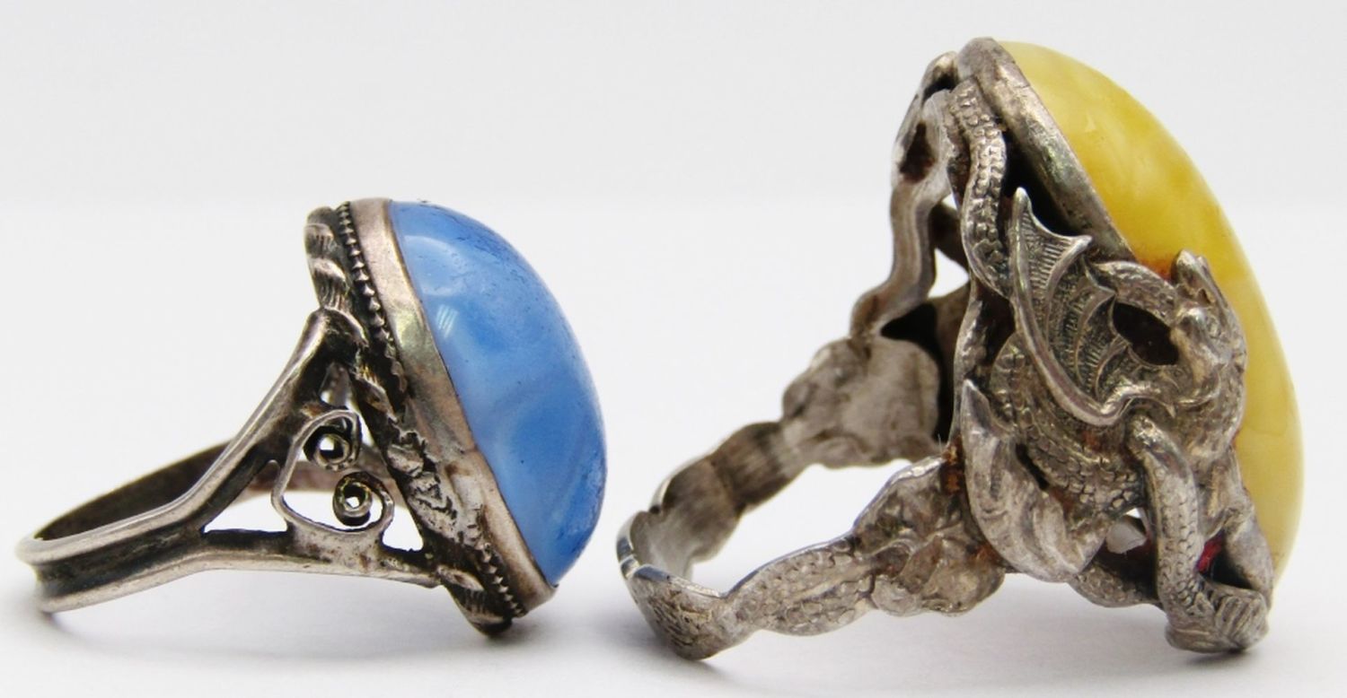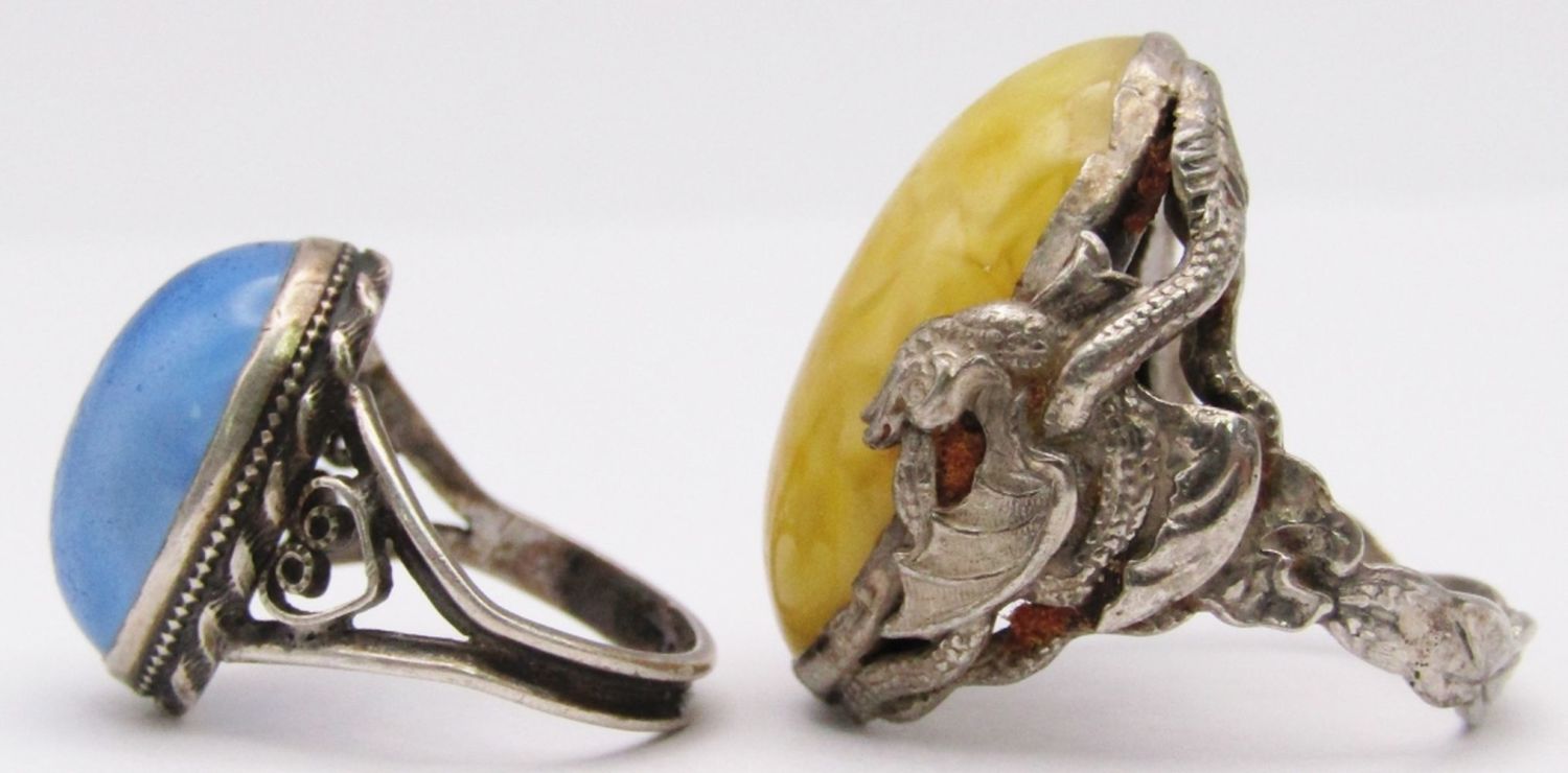 YELLOW CENTER STONES-RING SIZES 4 & 7.5-TOTAL 8 DWT