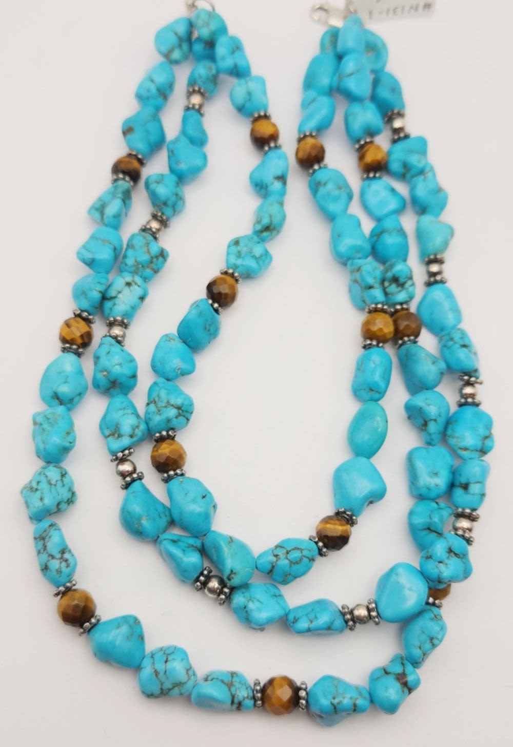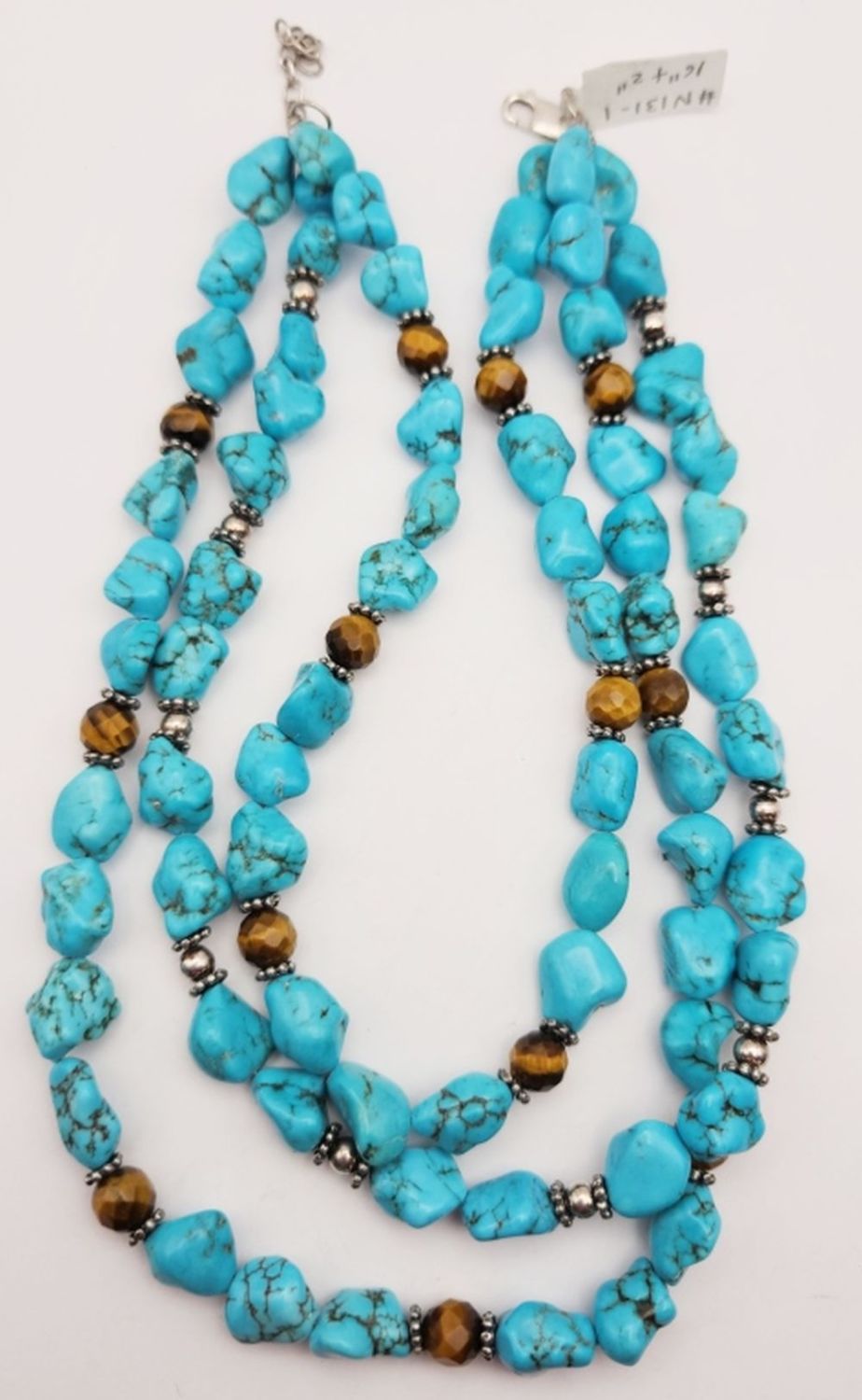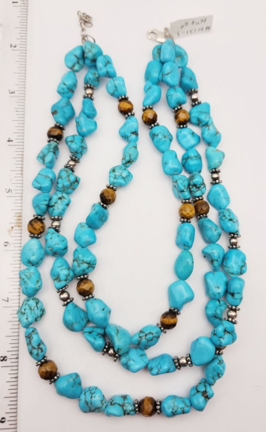 BEADED NECKLACE WITH TIGER EYE & 925 BEAD ACCENTS-MEASURES 17 INCHES-TOTAL 80 DWT