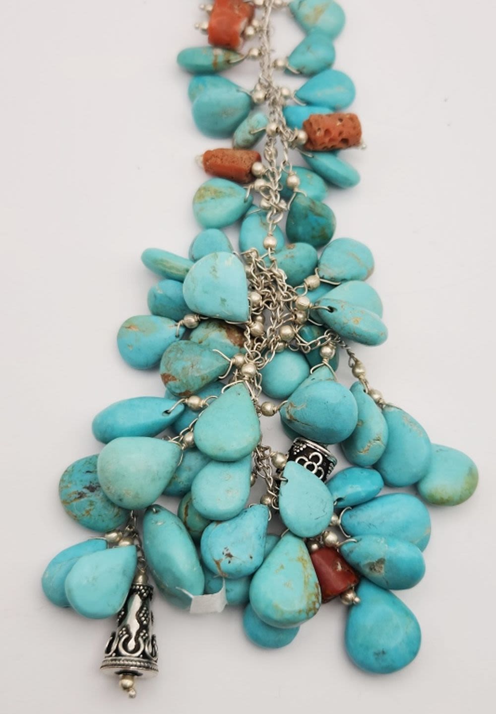 LOADED WITH TURQUISE BEAD CHARMS & RED CORAL ACCENTS