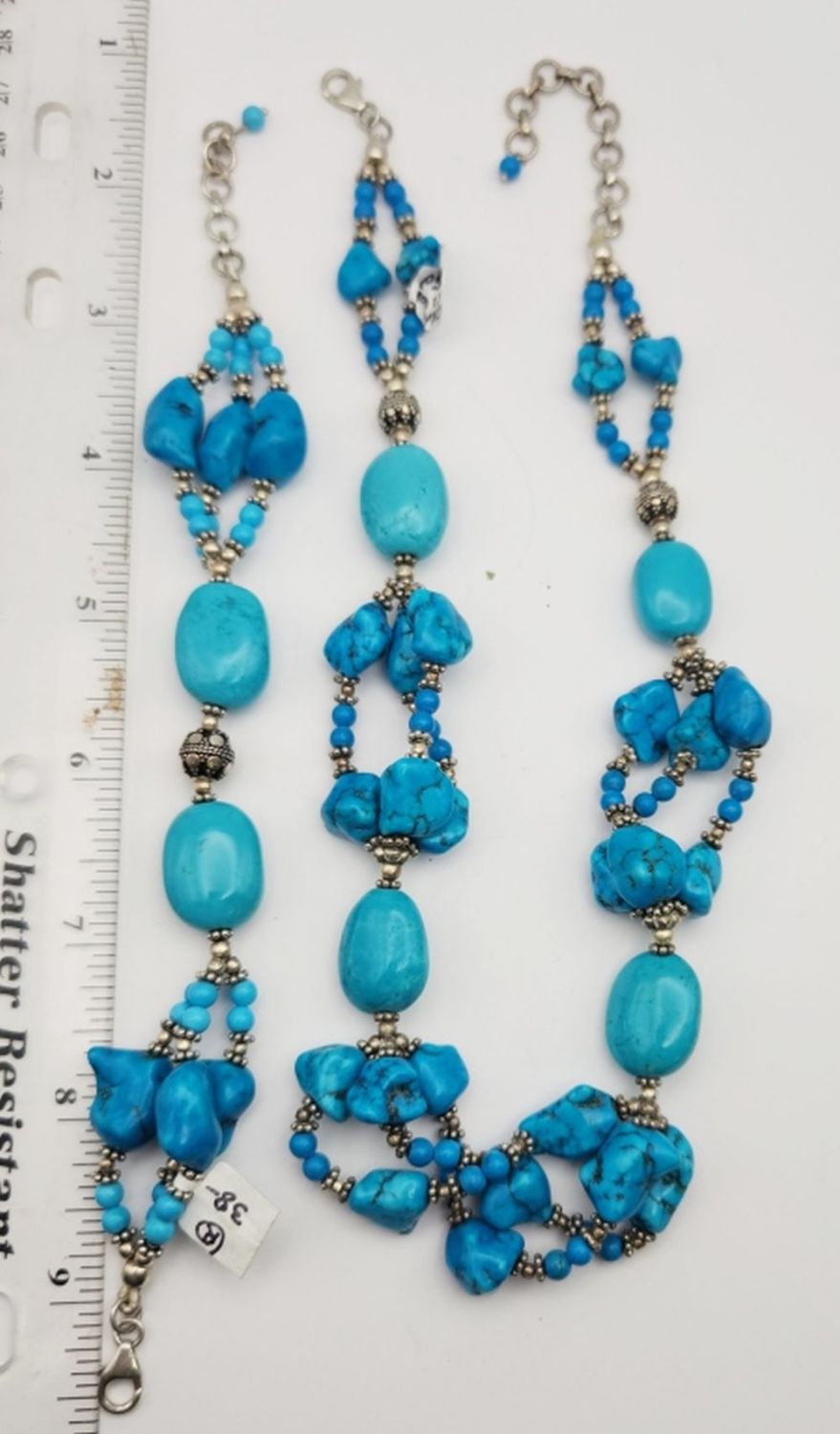 NEACKLACE WITH MATCHING BRACELET-NECKLACE MEASURES 18.5 INCHES & BRACELET MEASRUES 9 INCHES