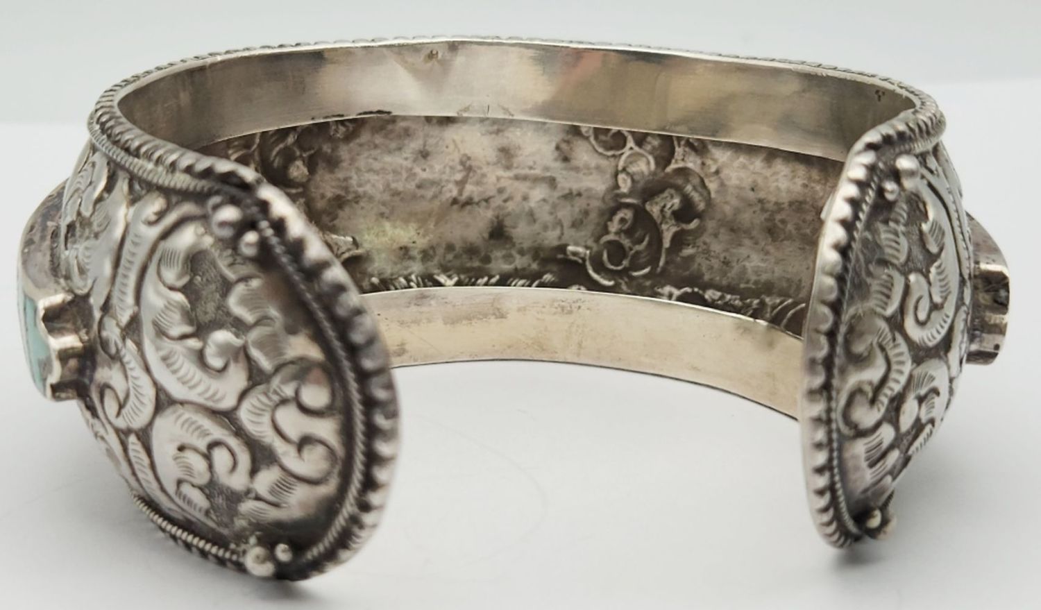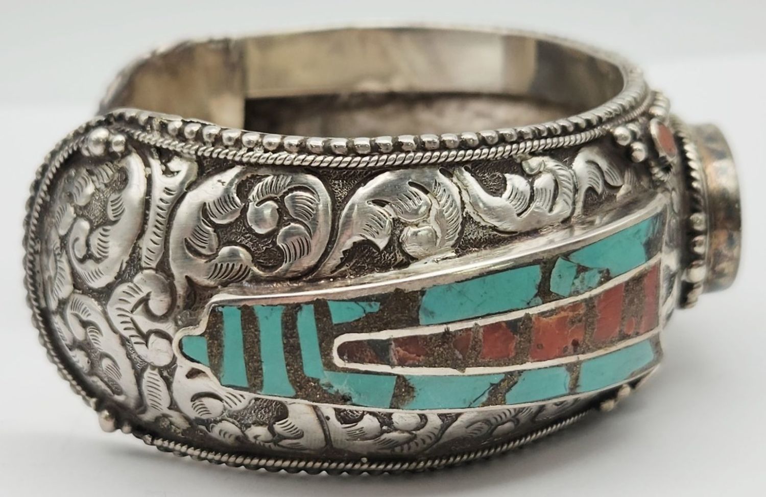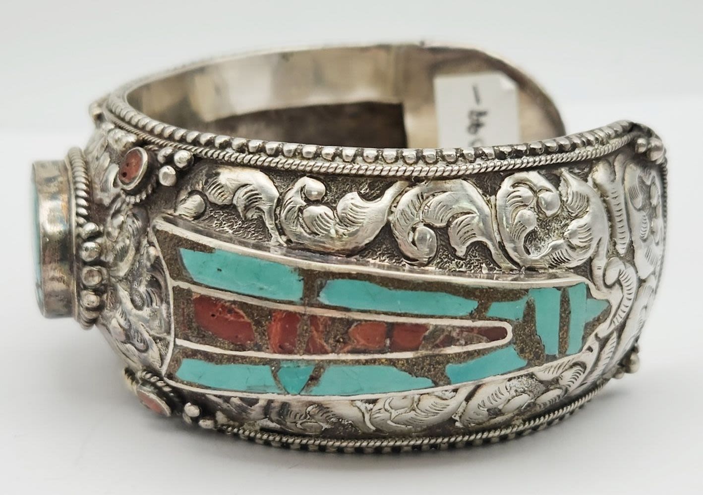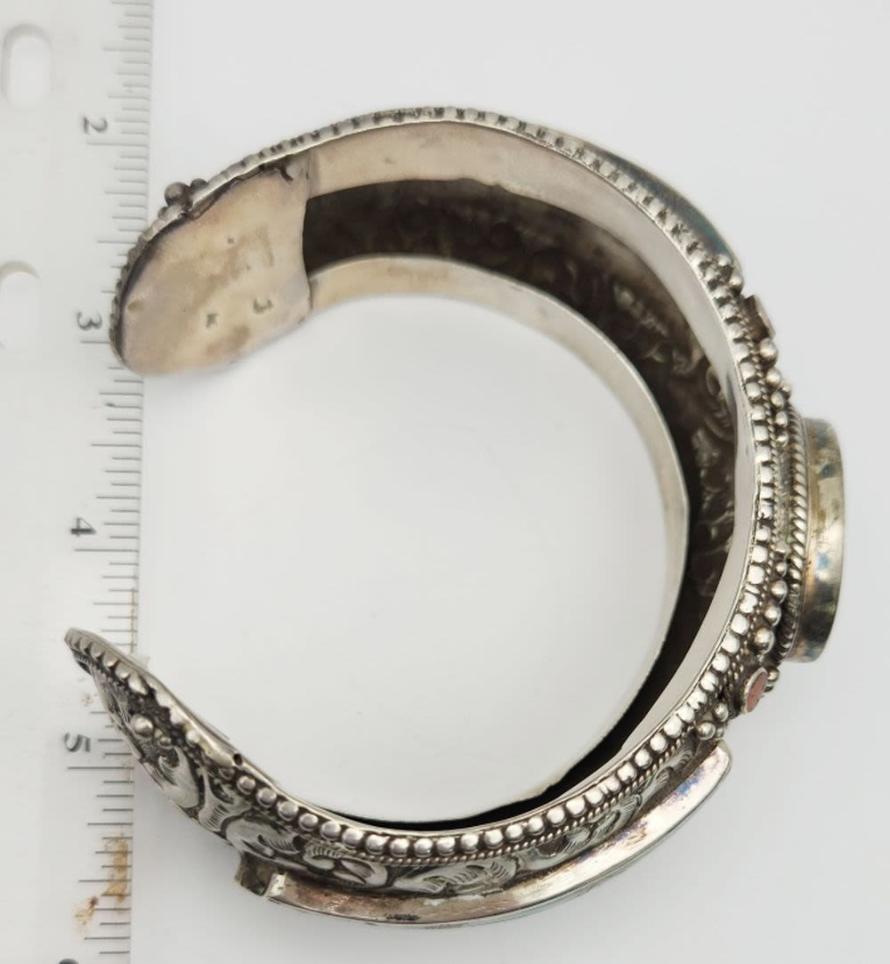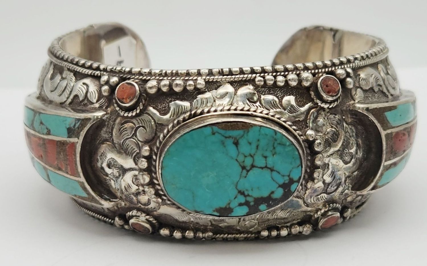 WITH TURQUOISE AND RED CORAL STONE DESIGN-GORGEOUS PIECE! MEASURES 11 INCHES WITH GAP-TOTAL 59 INCHES