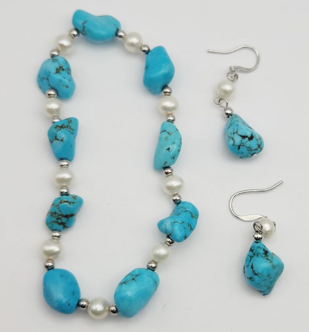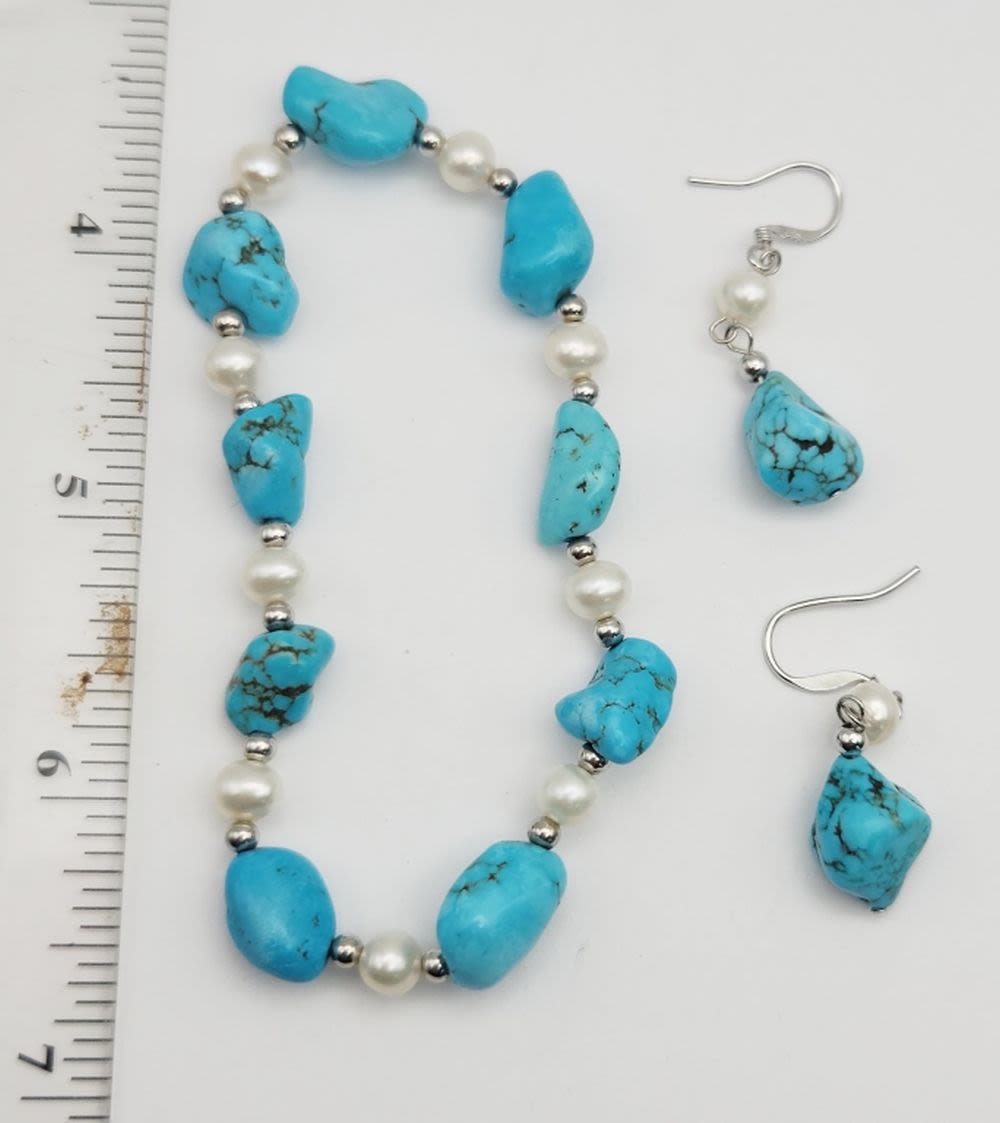 PEARL ACCENTS WITH MATCHING PAIR OF PIERCED DANGLY EARRINGS