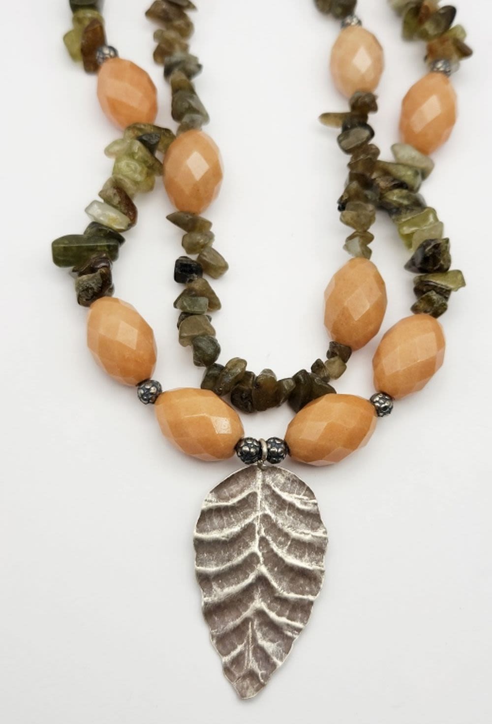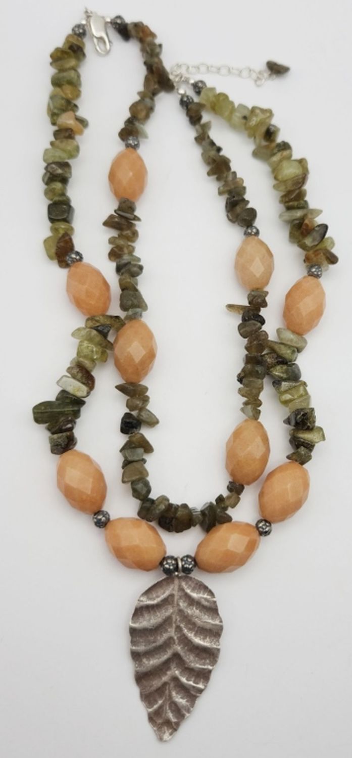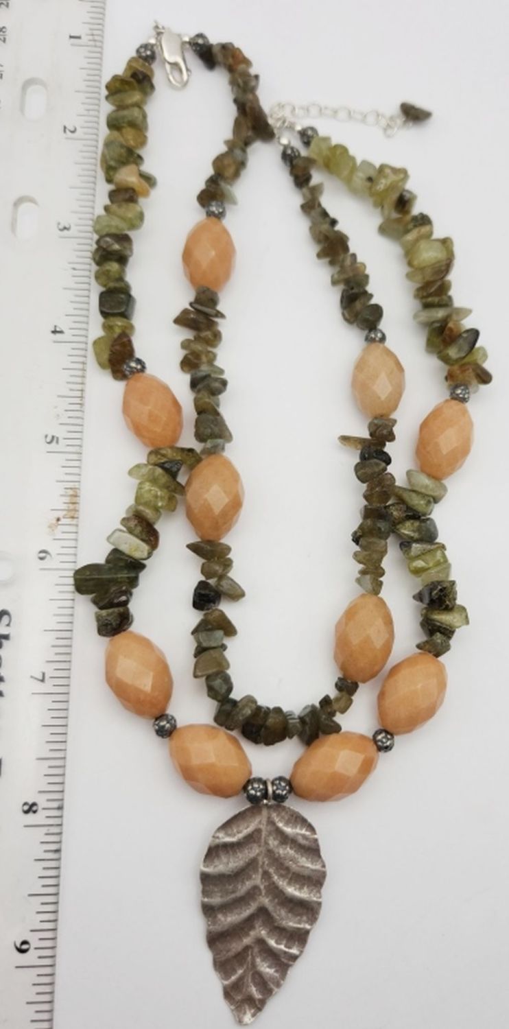 STONE NECKALCE WITH STERLING BEAD ACCENTS & LEAF PENDANT-TOTAL 63 DWT